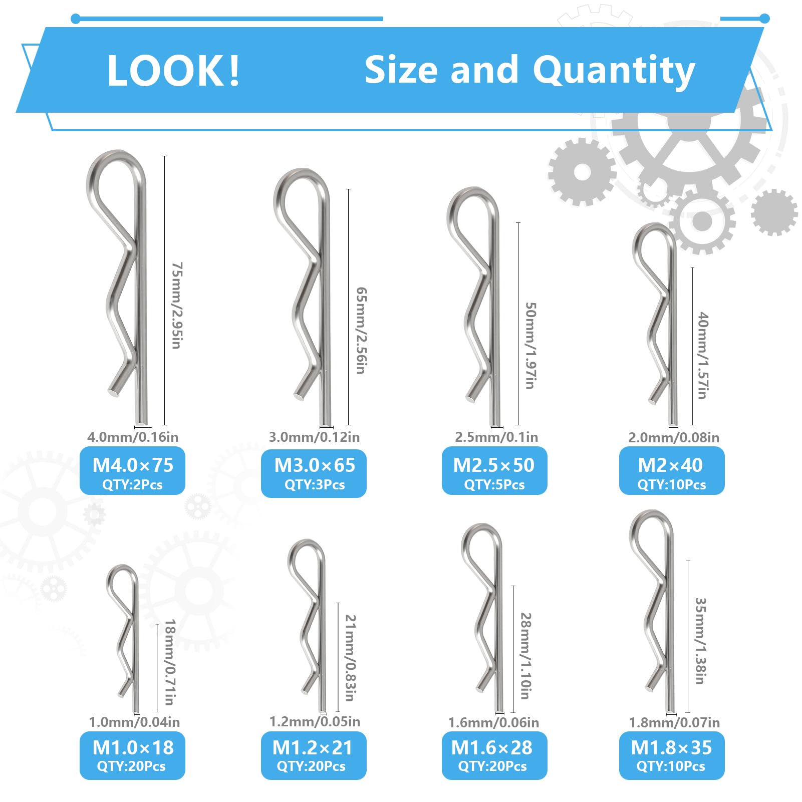 - ALLECIN 8 Sizes R Clips - Includes M1x18 & M1.2x21 & M1.6x28 & M1.8x35 & M2x40 & M2.5x50 & M3x65 & M4x75 - Meet your individual needs.