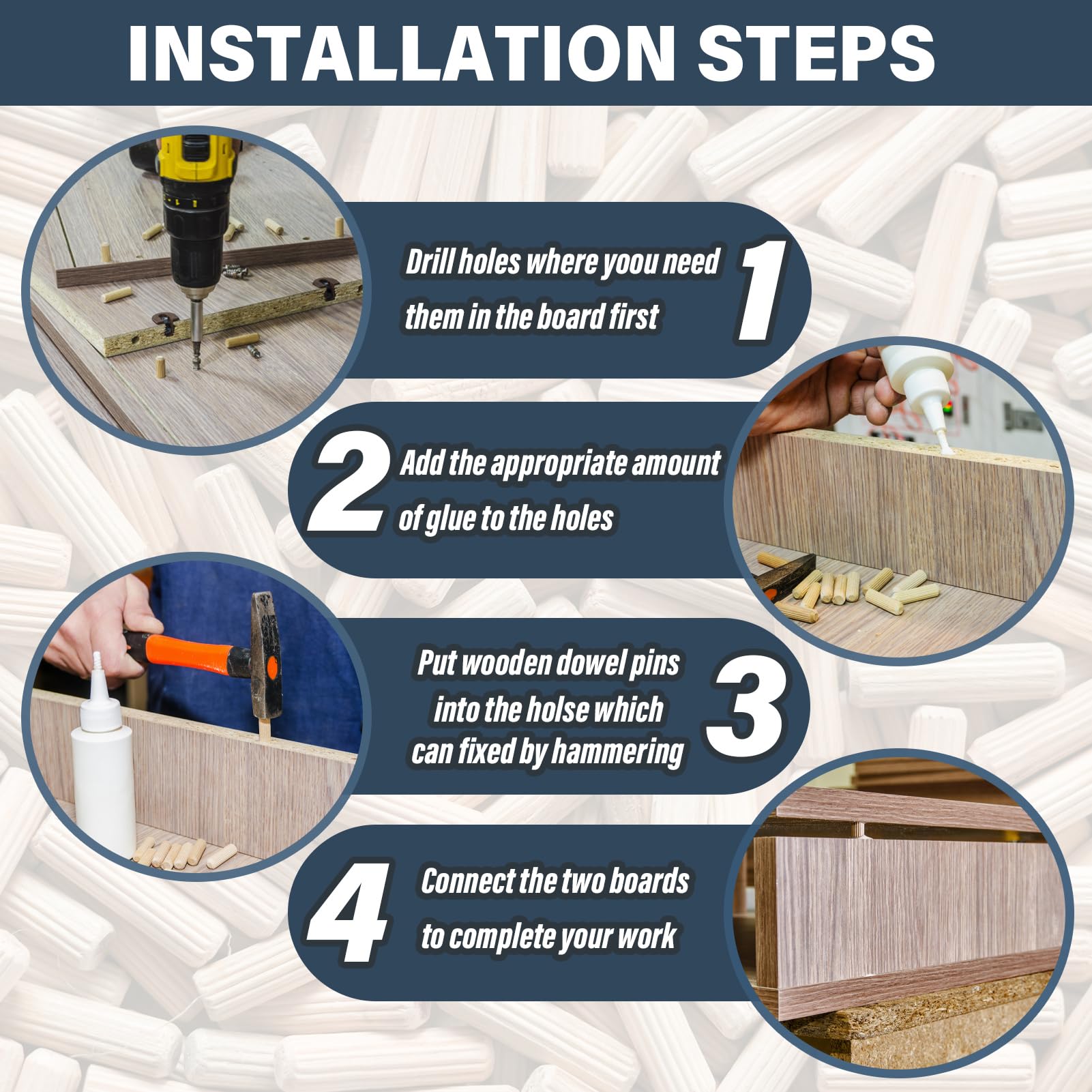 - Premium Material: Wooden dowel pins are composed of straight-grained hardwood - Sturdy and not easy to break.