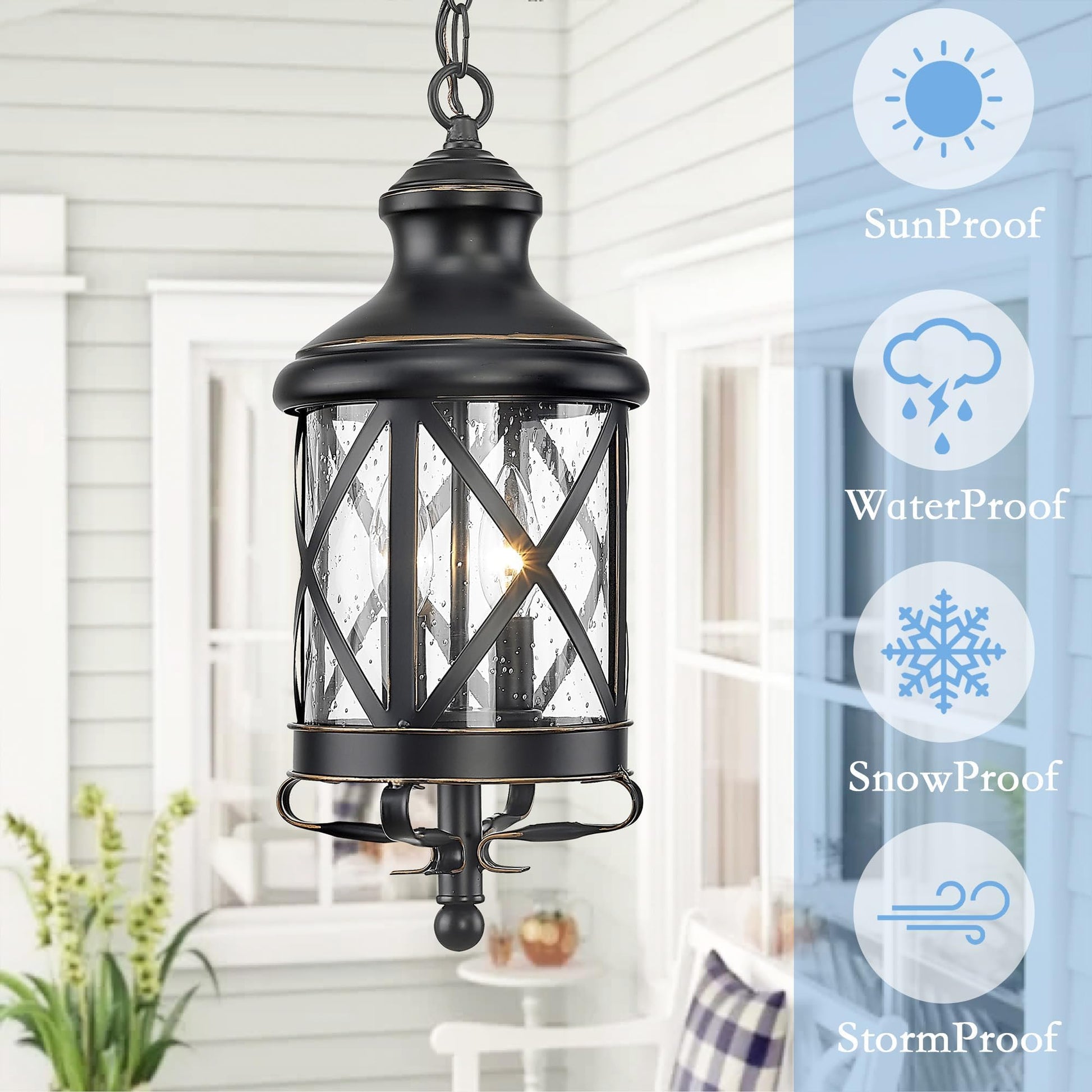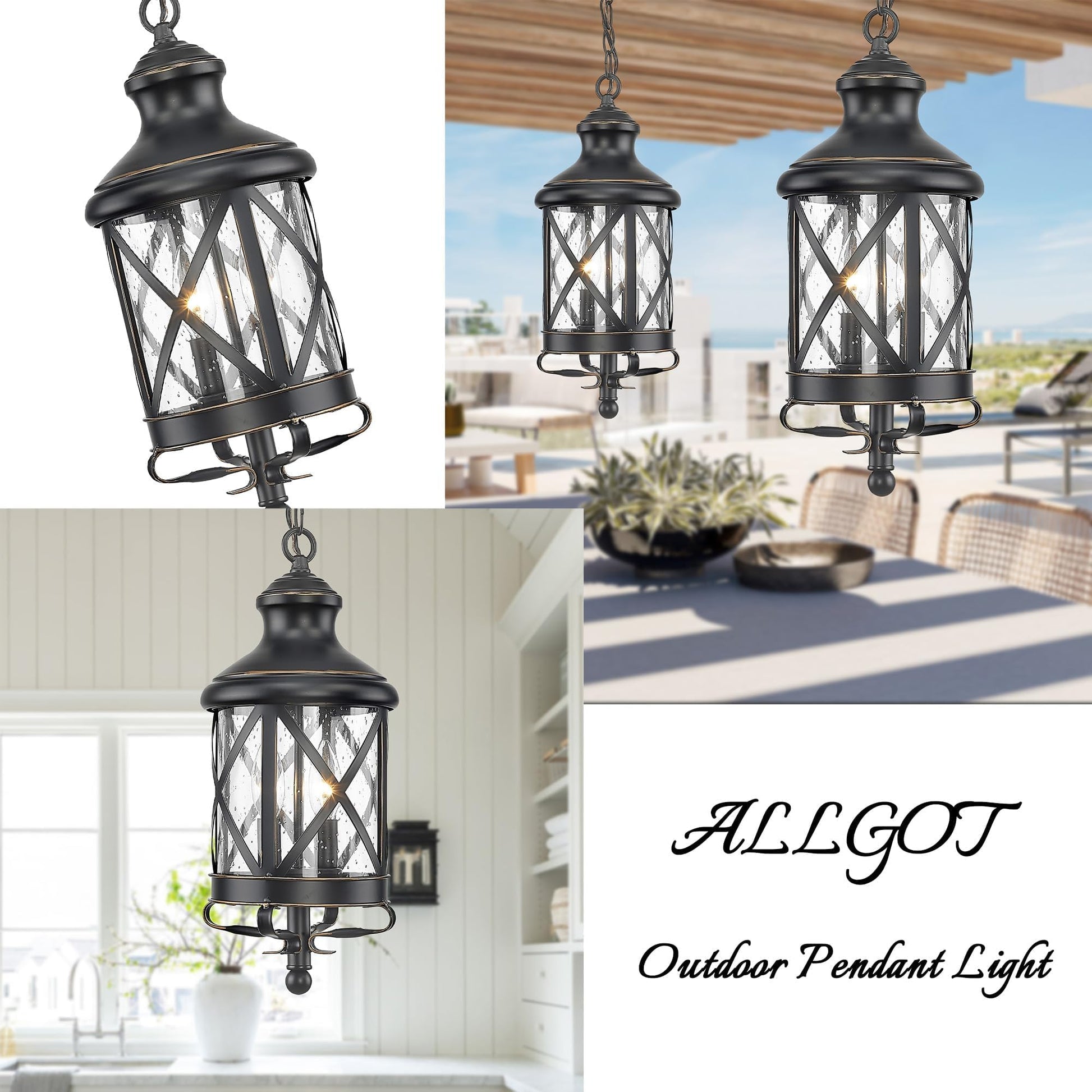 ALLGOT Outdoor Pendant Light for Porch,17.5 Inch Tall Farmhouse Pendant Lights, Outdoor Hanging Lanterns, Anti-Rust Exterior Hanging Porch Lights, Waterproof Ceiling Lanterns with Seeded Glass(Black)