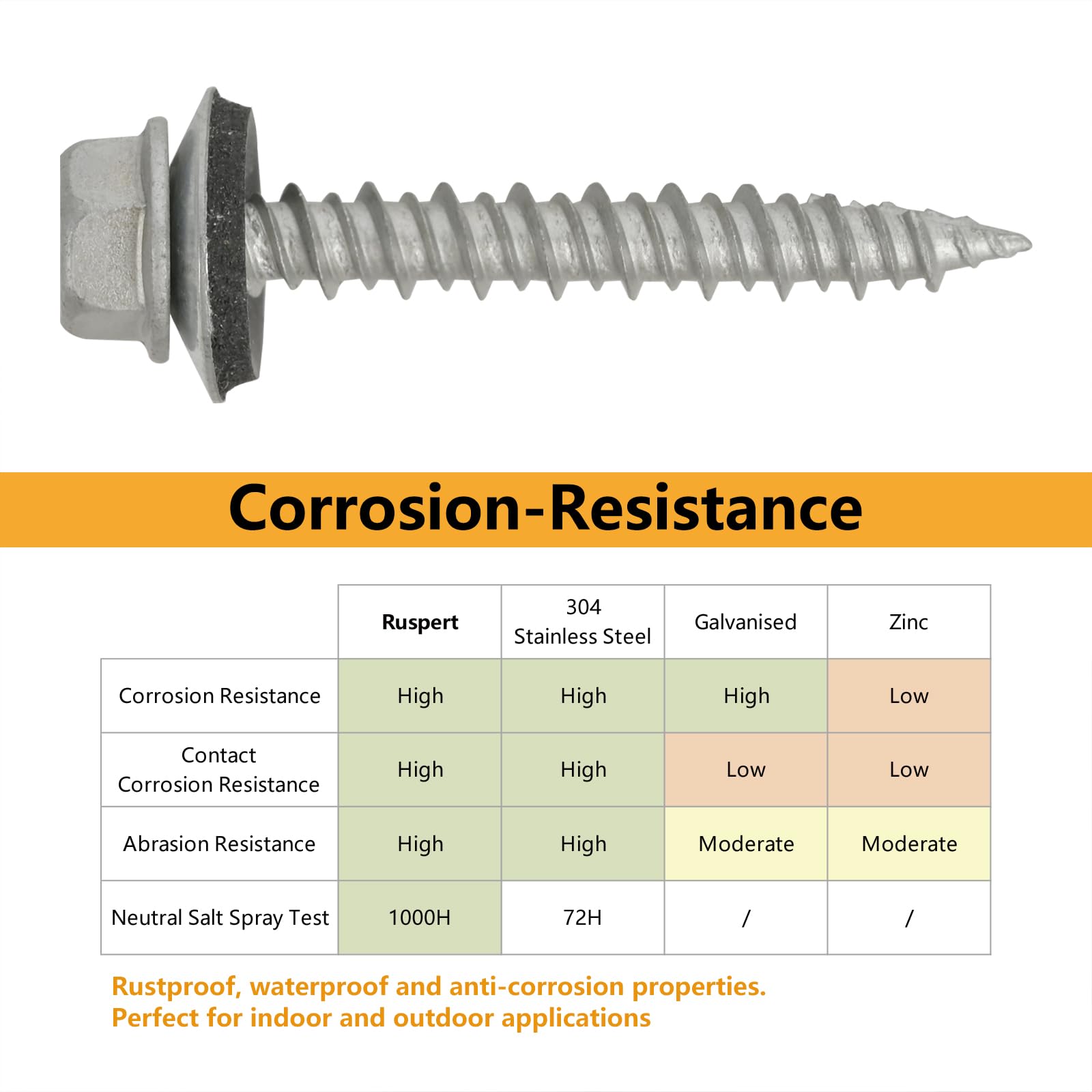 - [Anti-Corrosion Coating]: Made of 1022A Carbon Steel with Ruspert coating finsh, These screws pass salt spray test for 1000 hours, has superior rustproof, waterproof and anti-corrosion properties. Perfect for indoor and outdoor applications