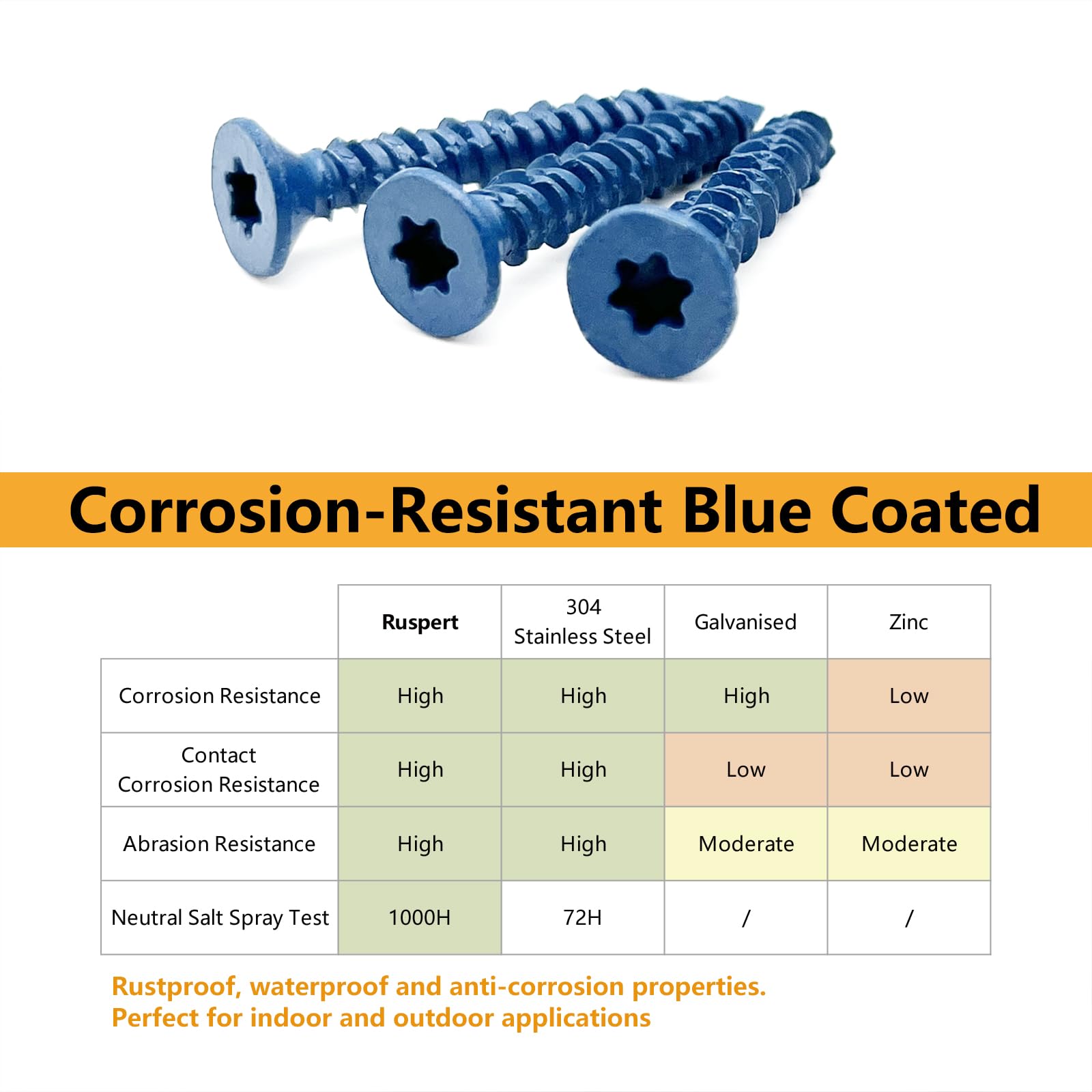 - [Premium Material]: Made of 1022A Carbon Steel with Ruspert coating finsh, These screws pass salt spray test for 1000 hours, has superior rustproof, waterproof and anti-corrosion properties. Perfect for indoor and outdoor applications
