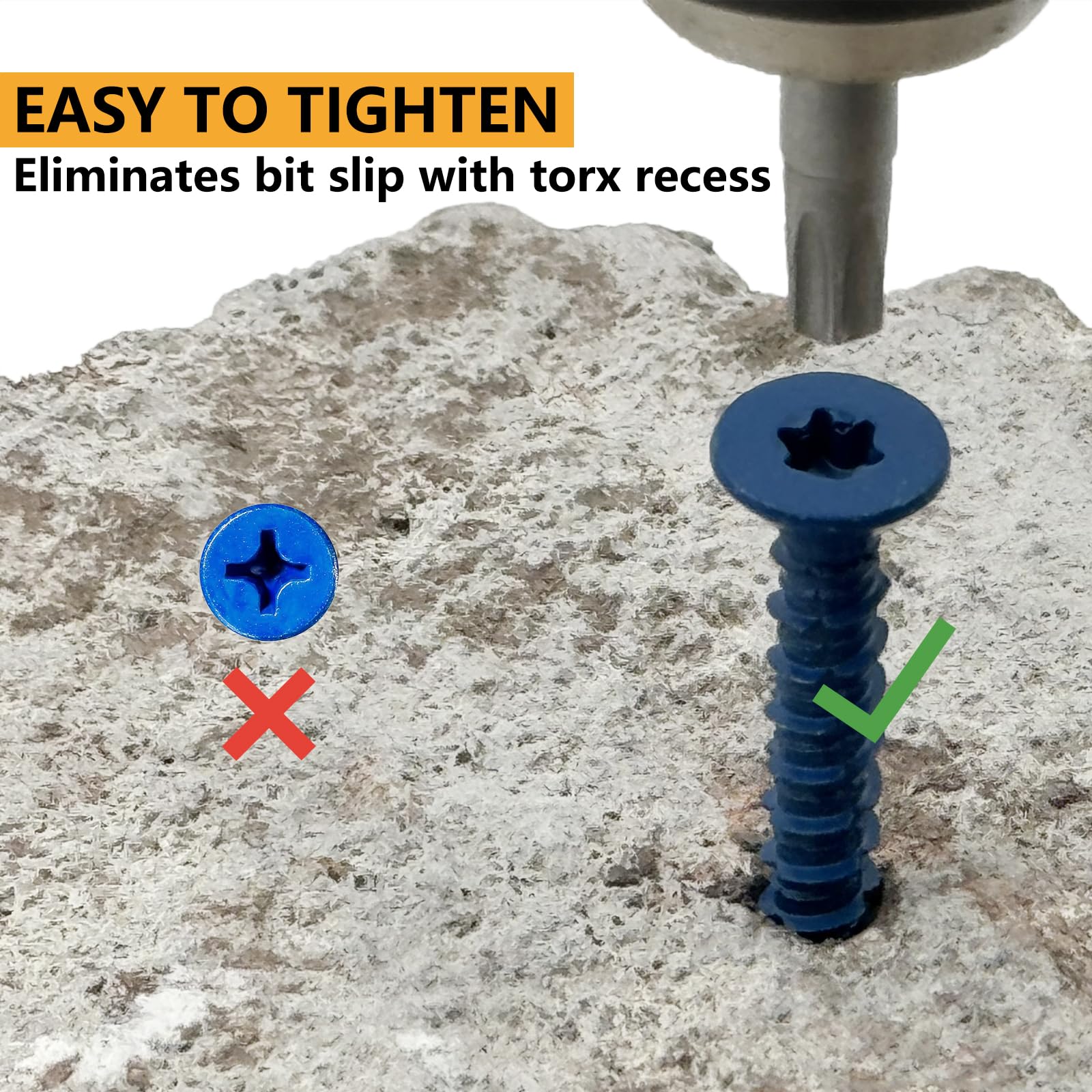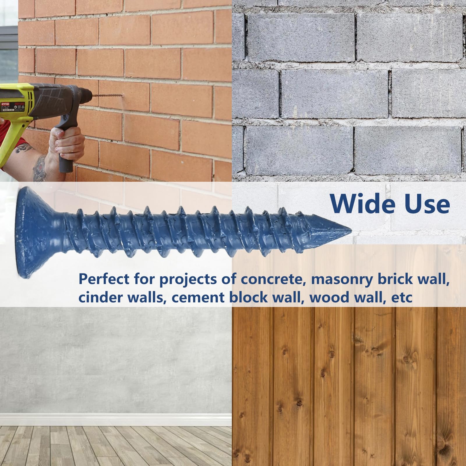 - [Multi-Application]: These 3/16" x 1-1/4" concrete screws are ideal for variety of projects from concrete, masonry, mortar walls, furniture, courtyards to block, brick, etc