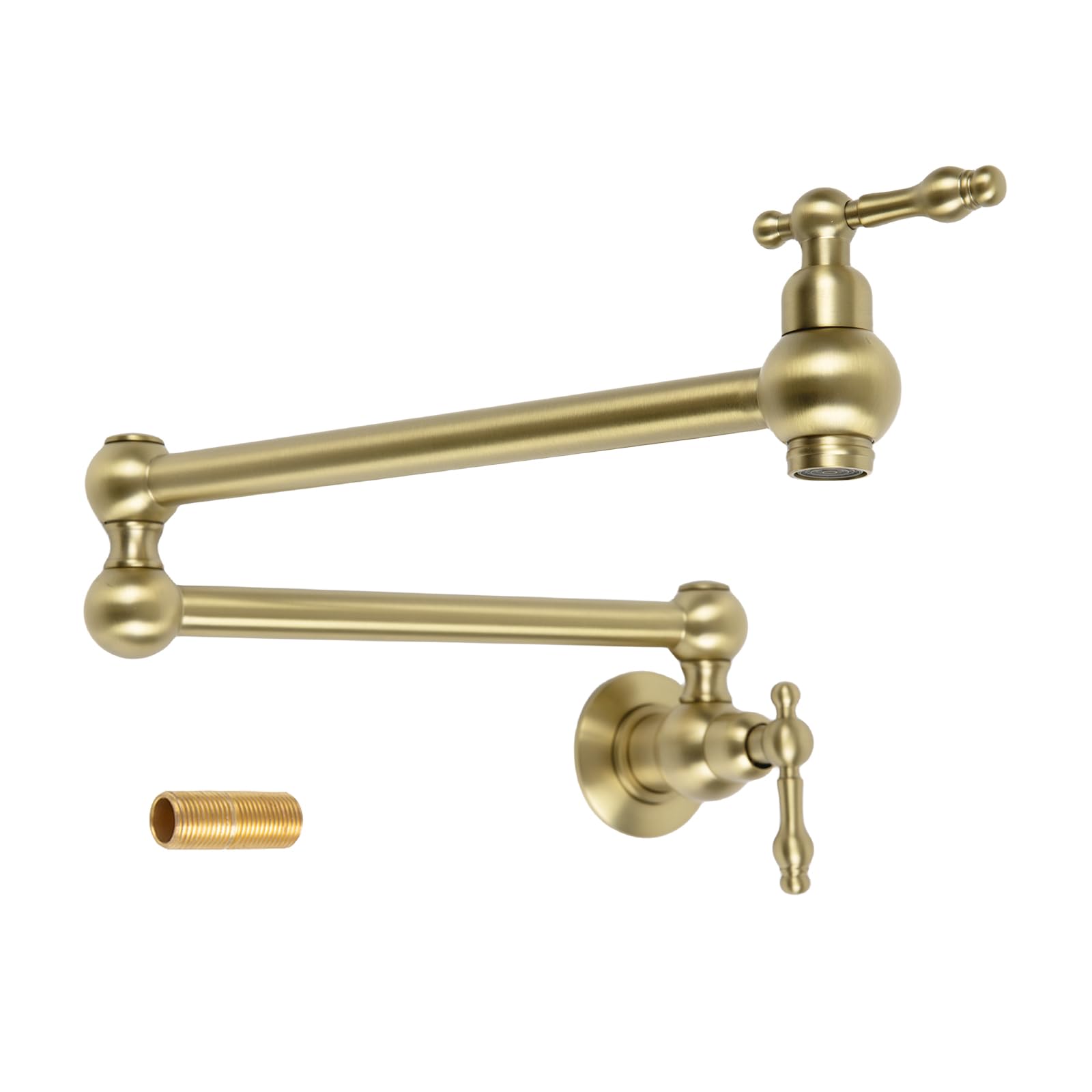 Allkorma 23" Brass Pot Filler Faucet Brushed Gold, Wall Mount Over Stove Water Faucet, Antique 2 Handles Folding Stretchable Pot Filler