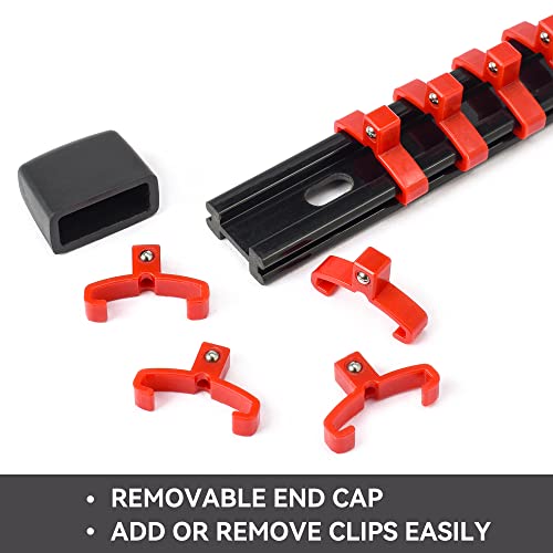 - Removable End Cap Design: Clips can be easily added or removed to meet your DIY needs for multiple sizes on a single rail. Also makes it easier for you to remove the clips to clean the socket rail organizer.