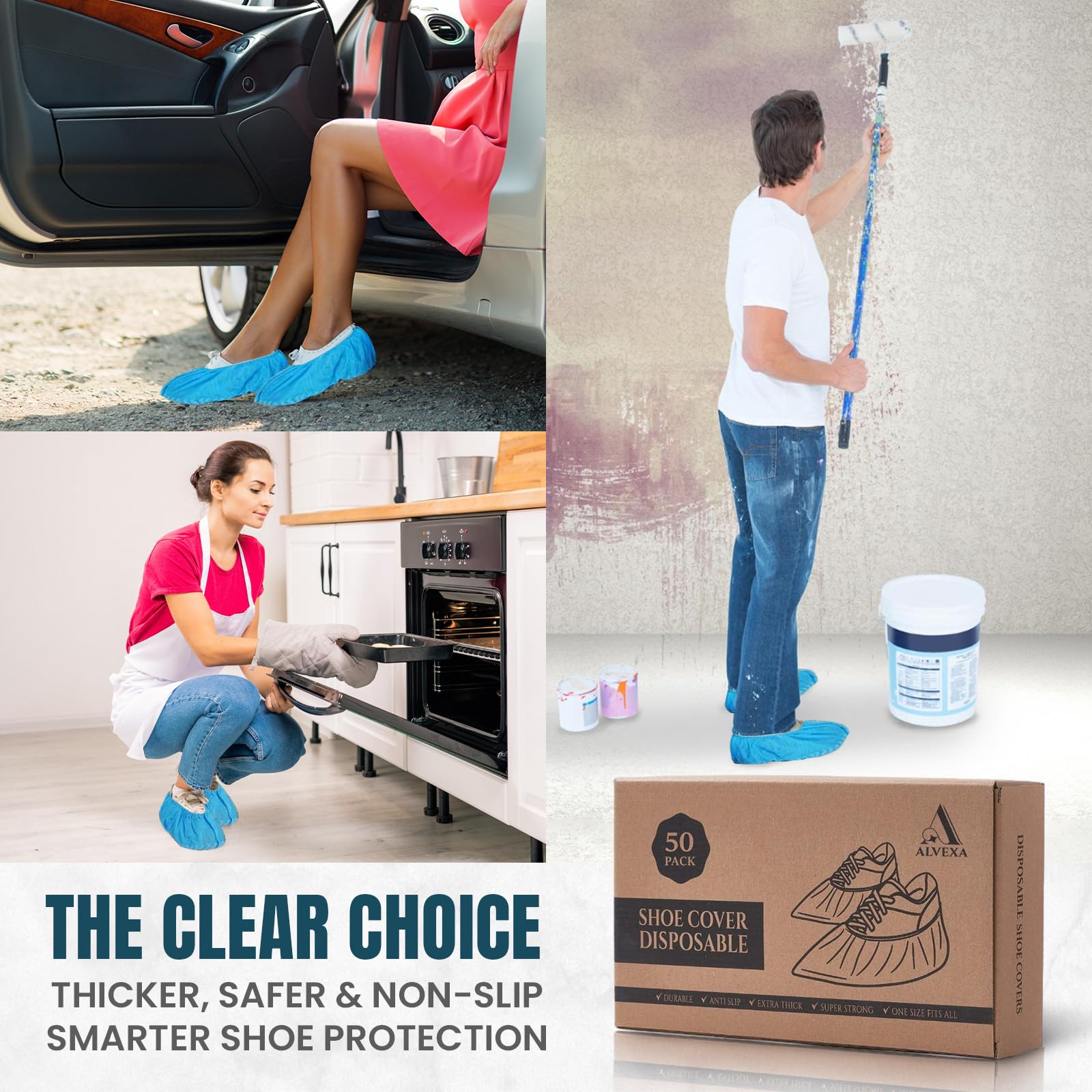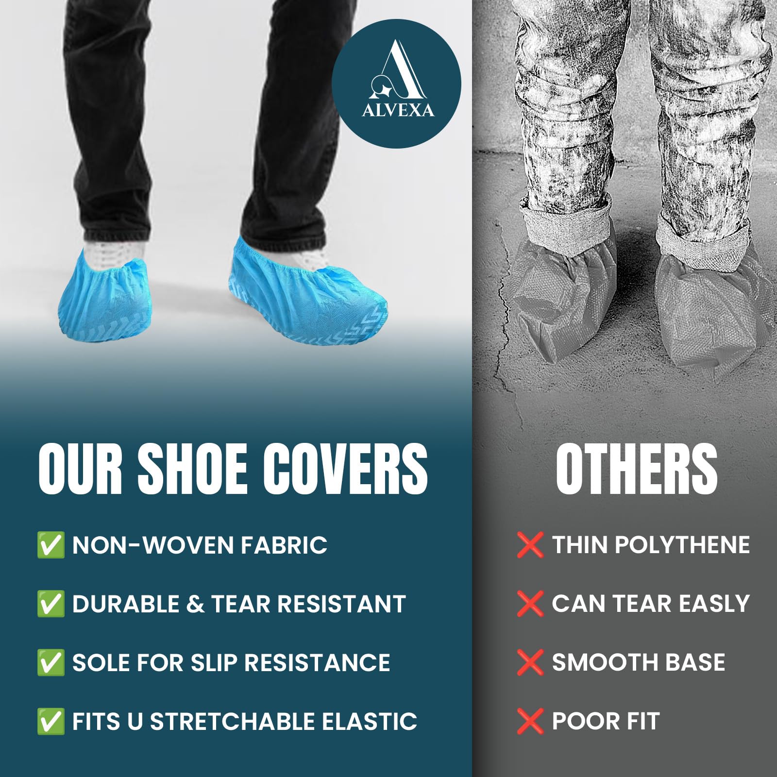 Alvexa Shoe Covers Disposable Non-Slip, Large 50 Count, Premium Cloth Boot Covers, Slip-Resistant, Durable, Breathable, Non-Toxic, Recyclable booties for shoes covers – Fits Men 11/Women 13 – Blue