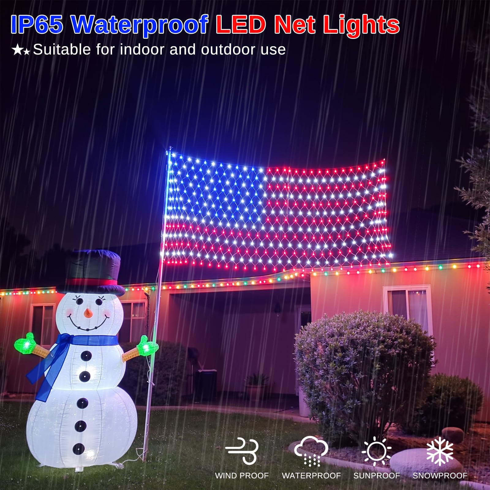 American Flag Lights Outdoor - 420 Super Bright Red White and Blue Lights, Waterproof Led Flag Net Light of The United States for Memorial Day, 4th of July, Yard, Garden, Christmas Decorations