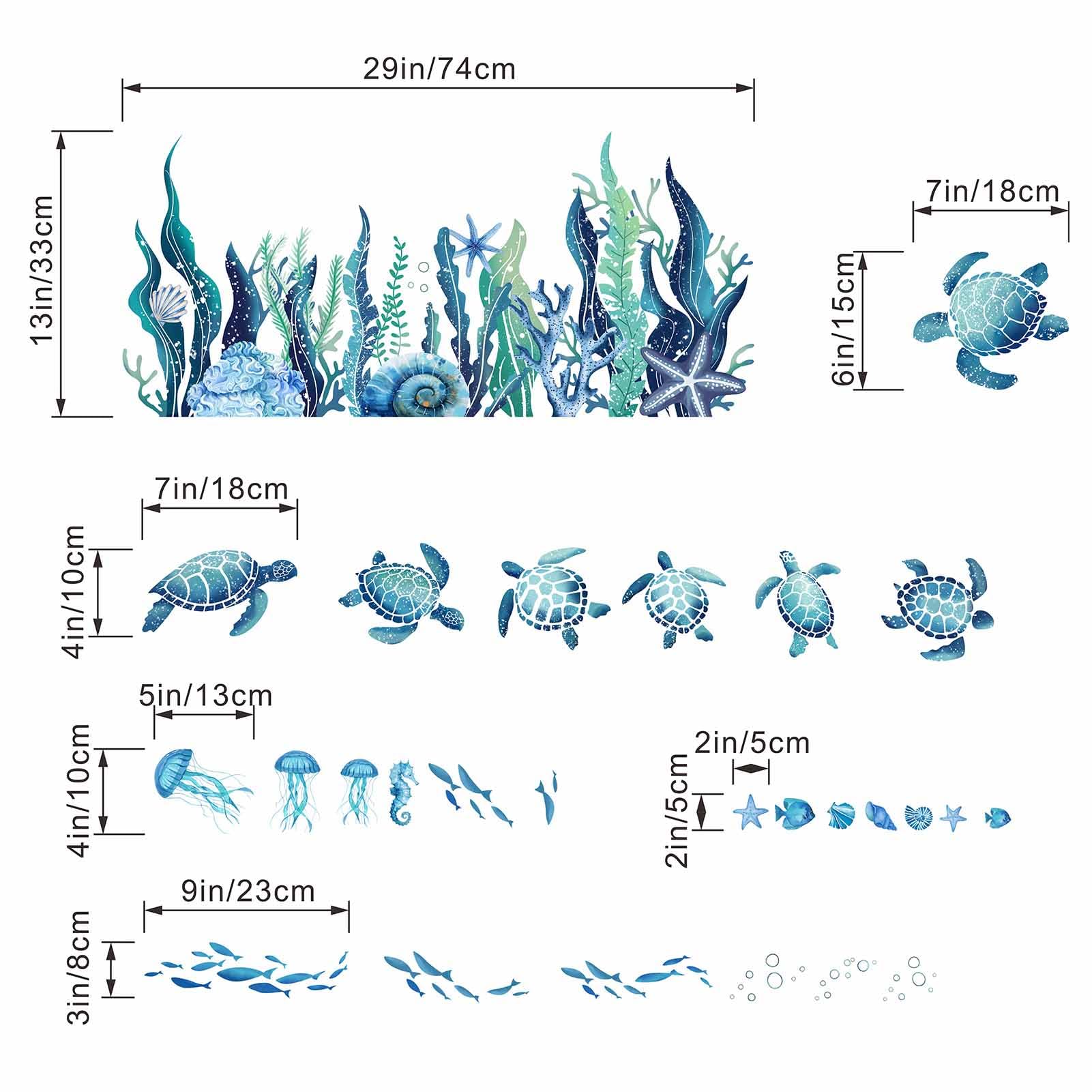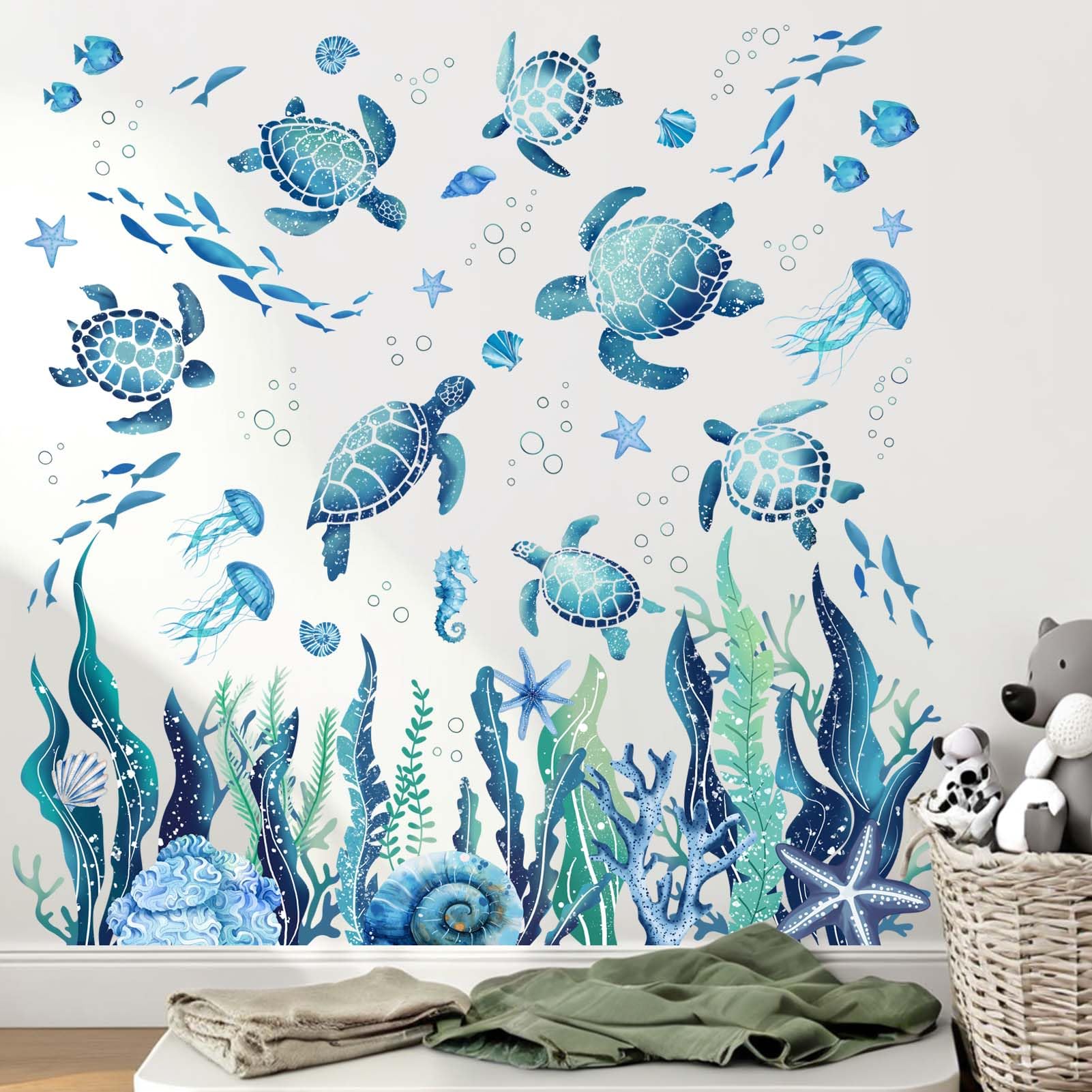 Amimagen Ocean Sea Turtle Wall Stickers - Under The Sea Marine Theme Seaweed Grass Wall Decals - Baby Nursery Kids Bedroom Daycare Bathroom Wall Decor Stickers
