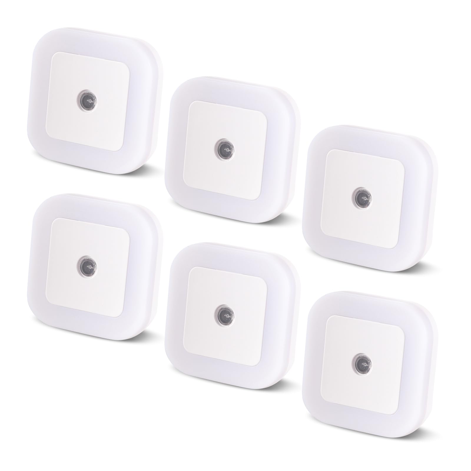 Amligy Night Light, 0.5W Daylight White LED Plug-in Night Light with Dusk to Dawn Sensor, Pack of 6 - Designed for Kids Room,Bedroom, Bathroom, Stairs, Kitchen