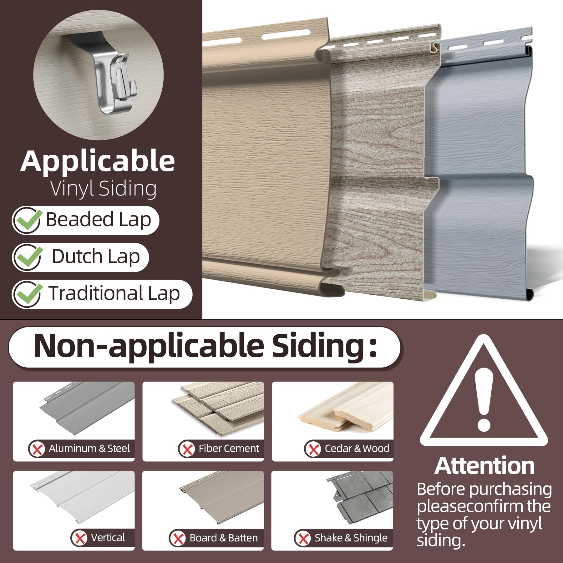 - 【No Hole Easy Installation】These vinyl siding hangers easily roll into horizontal siding panels—no tools, no drilling, no damage. Quick to install, remove, and reposition whenever you need. (Not for vertical siding)