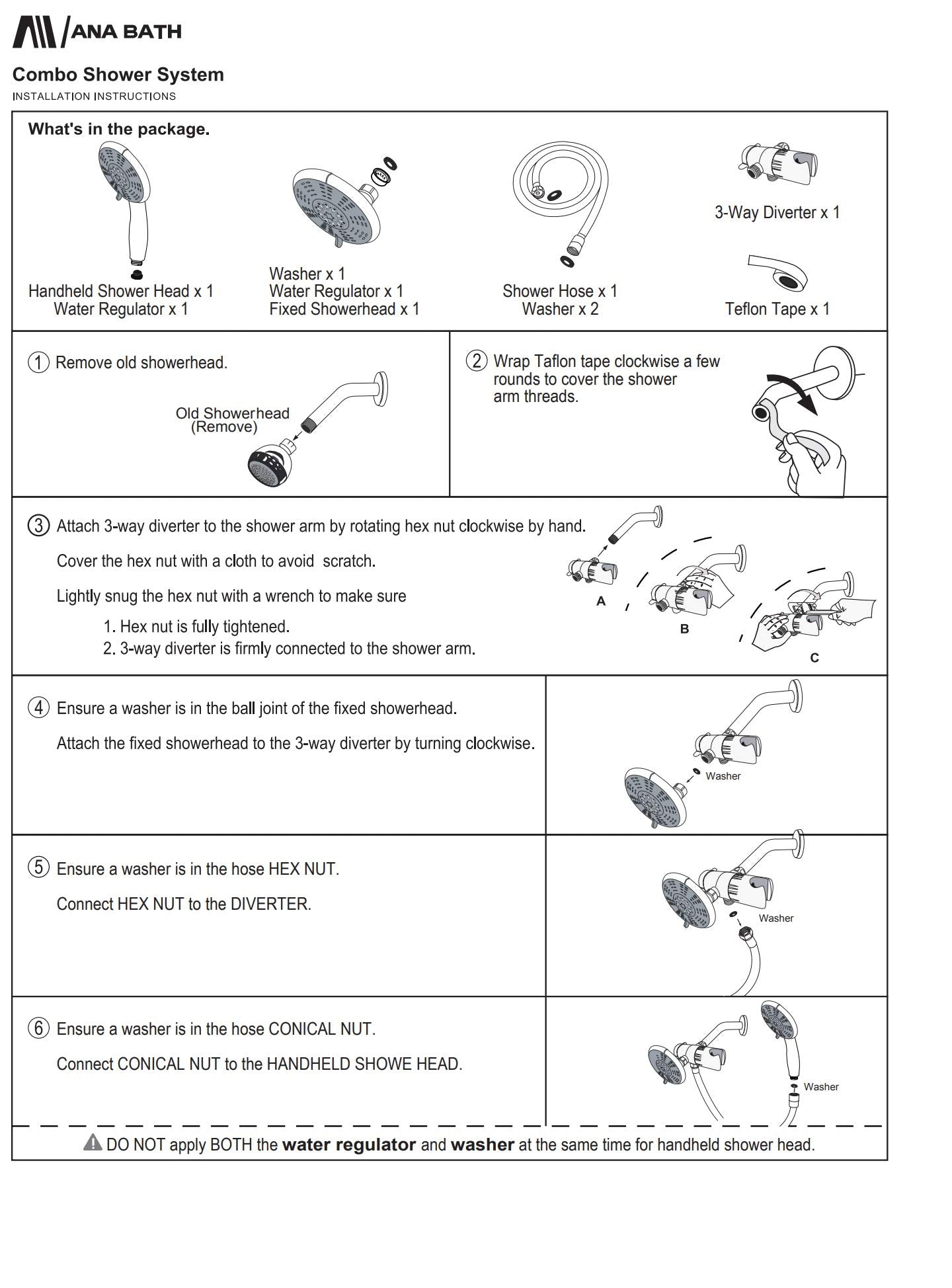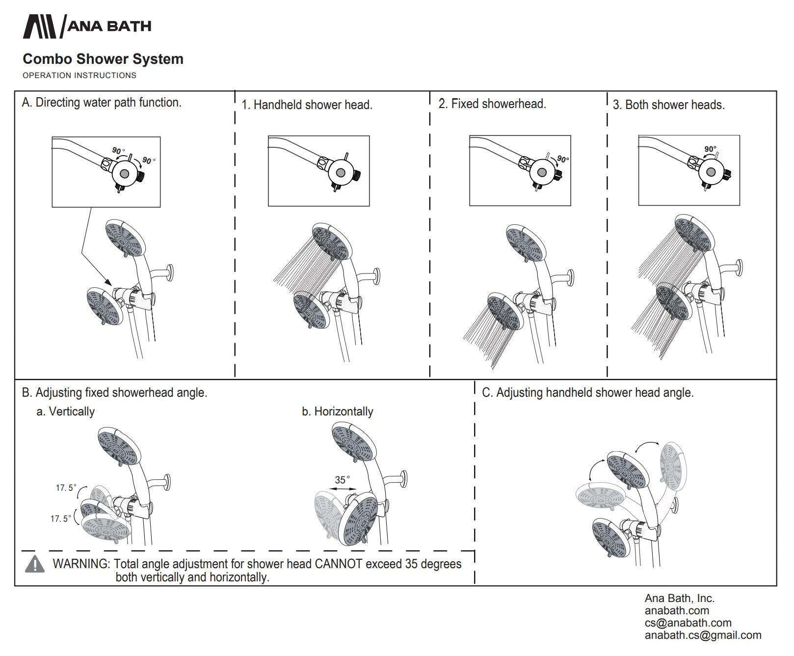 - LARGE/WIDE DIVERTER with BRASS CONNECTOR: Angle-adjustable overhead bracket | Wider and longer diverter than industry standard for sleeker look (no more cramming look) | Turn dial to direct water to handheld shower head only, fixed showerhead only, or both together