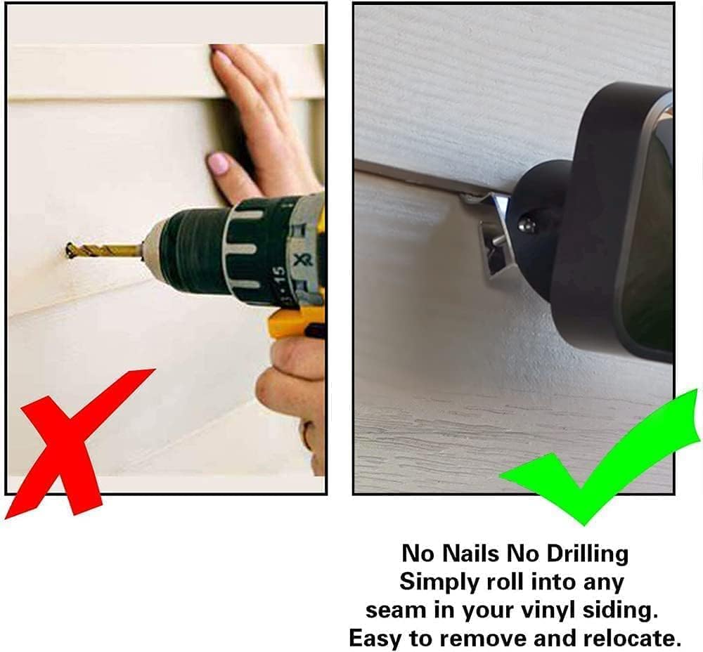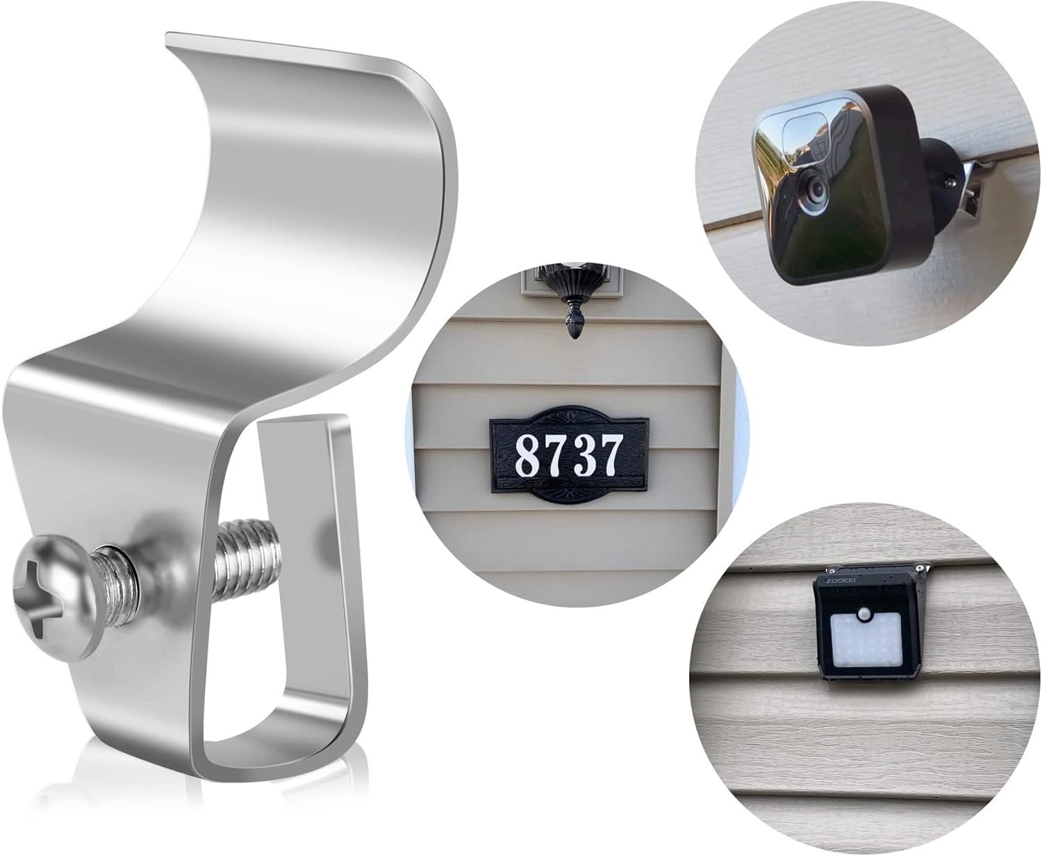 - 【Widely Applicable】These stainless steel siding mount clips are designed to holds exterior outside cameras such as Blink, Arlo, Ring cameras. In addition, it can also serve to hang Christmas wreaths, outdoor string lights, house exterior decorations, plants, solar panel lights and so on