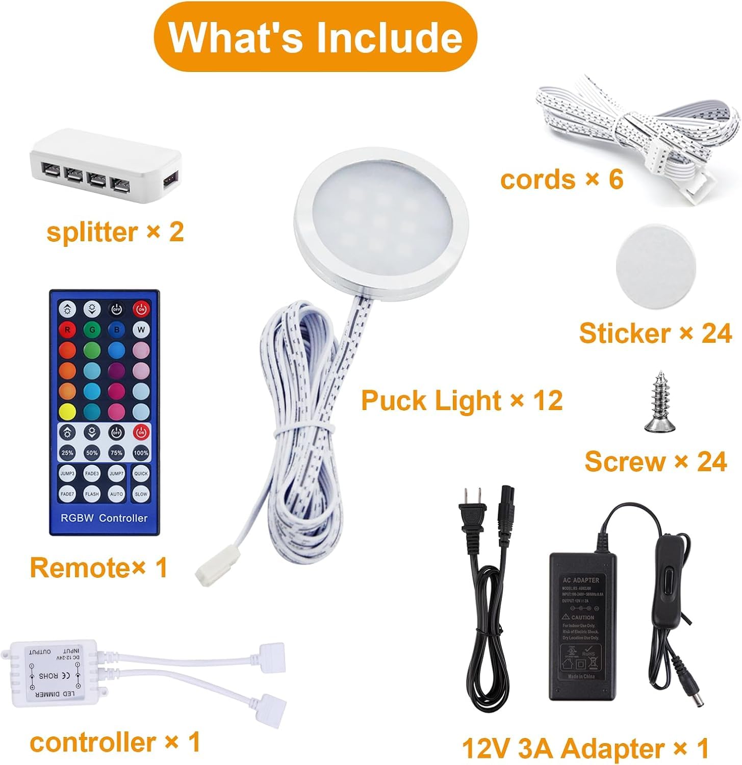 - RGBWW change: LED cabinet puck lights with more color options, more precise to find the feeling you need. The white light is great for living rooms or kitchens, CRI>83 very friendly to the eyes, while the RGB color is a good choice as a preparation for the approaching Halloween or Christmas indoor parties.