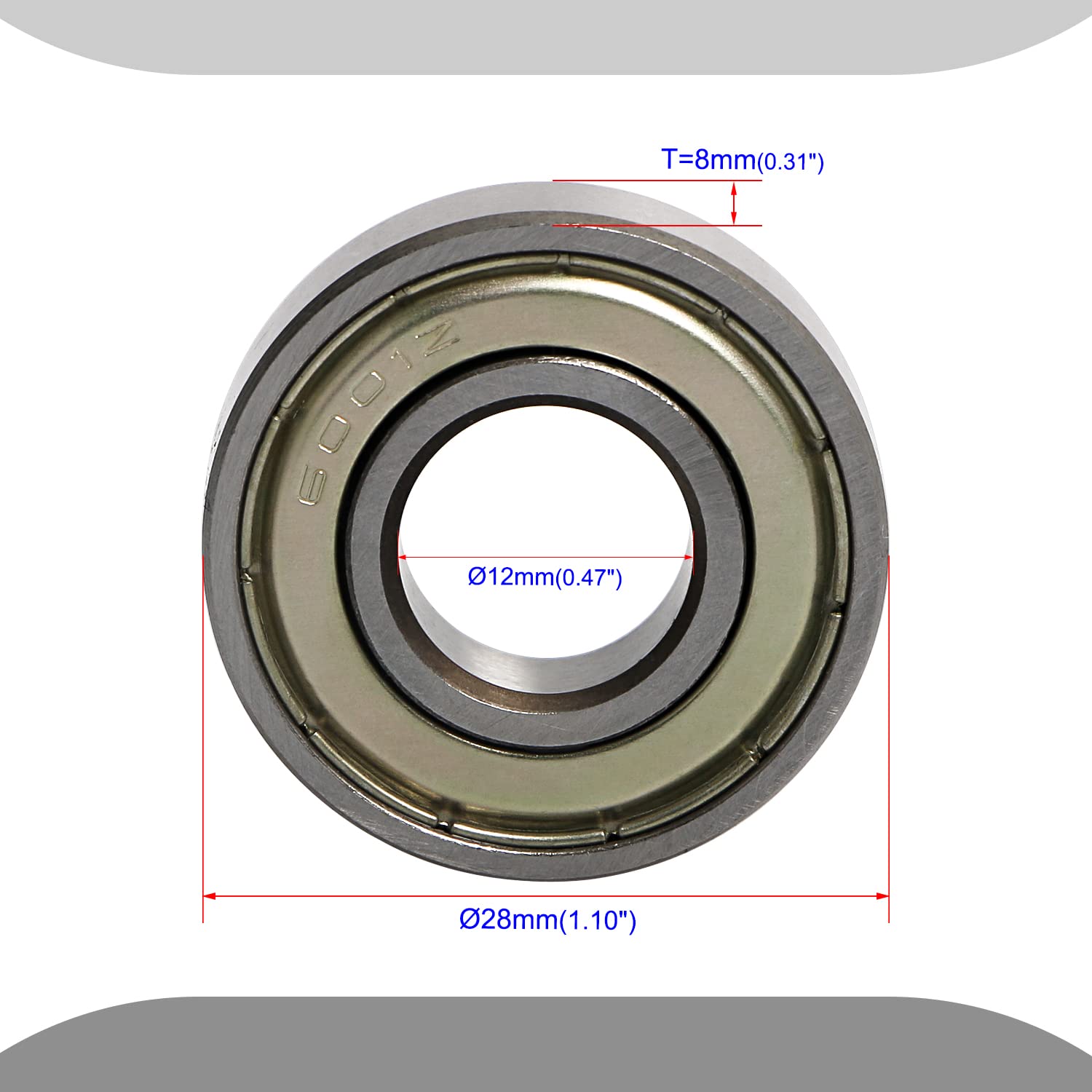 - ◈Size:6001Z Deep Groove Ball Bearing (Inner Diameter=12mm / 0.47", Outer Diameter=28mm / 1.10", Thickness=8mm / 0.31").