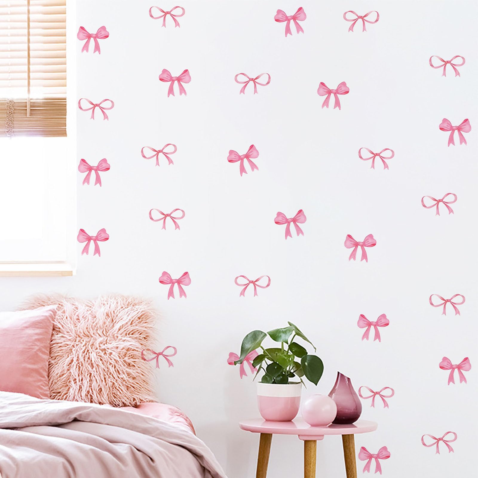 Arawat 8Sheet/80pcs Pink Bowtie Wall Stickers and Decals for Bedroom and Bathroom Bow Room and Wall Decor Coquette Room Decor for Bedroom Bow Sticker