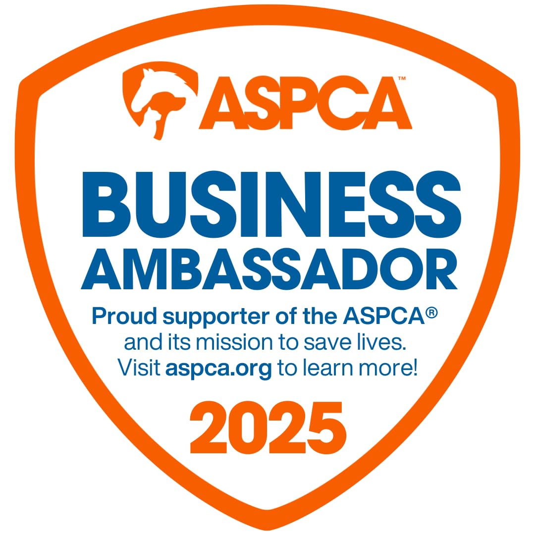 - ASPCA BUSINESS AMBASSADOR: We are proud to be part of the ASPCA Business Ambassador Program. If you have a pet, you realize they are more than a pet, they are part of the family. With your support, we’re proud to help this great organization.