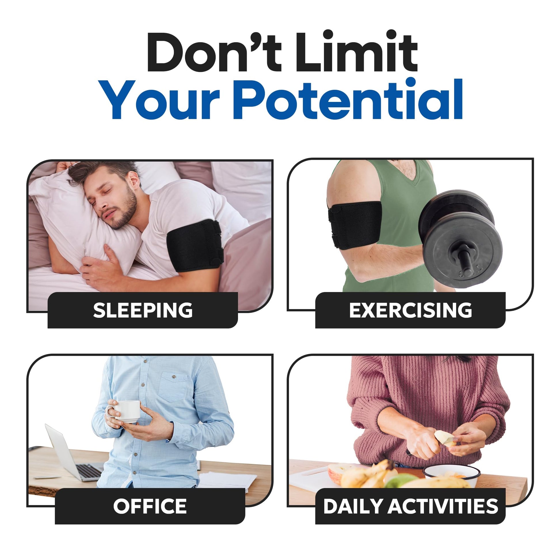 - COMFORTABLE UPPER ARM BRACE: Adjustable arm support & bicep compression to help reduce upper arm muscle pain or stiffness. Great lightweight bicep band for working out, weightlifting & gym exercising. Comfortable for nighttime or daytime wear.