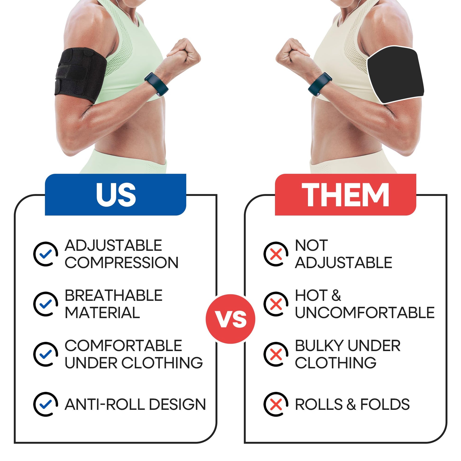 - BICEP & TRICEPS PAIN RELIEF Supportive Upper Arm Compression Sleeve to Help Get You Active and Moving Again. Feel More Confident, Supported and Less Arm Pain Today. Fits Both Left or Right Biceps or Triceps - 3 Size Options Please See Product Images