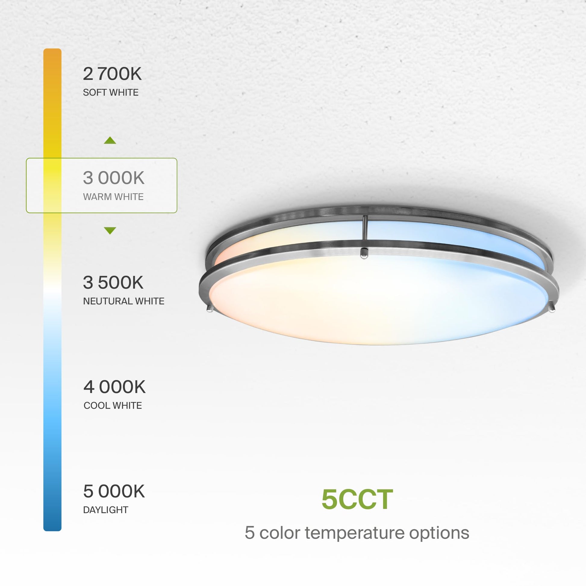 ASD LED 24 Inch Oval Flush Mount Light Fixture | 38W 3280LM 2700K-5000K 120V | 5CCT, Dimmable, ETL Listed | Close to Ceiling Double Ring Lamp, Low Profile Lighting | Nickel