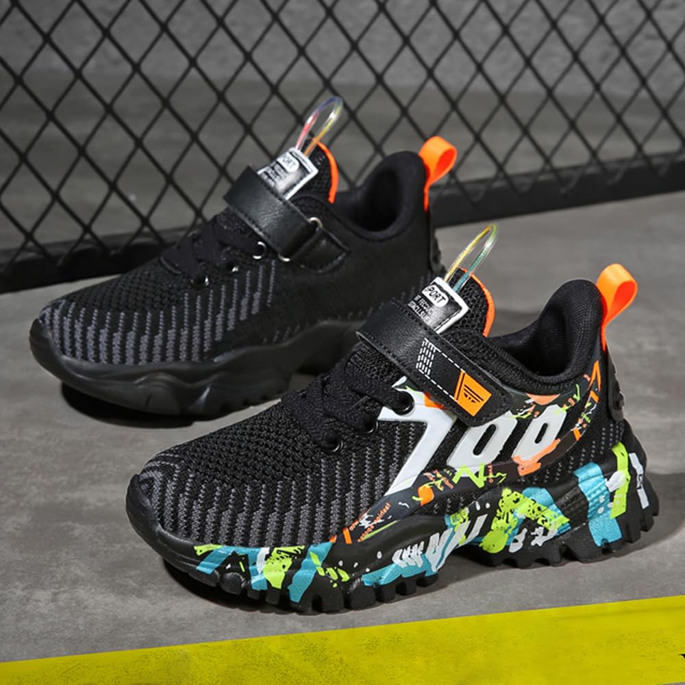 ASEKIHA Kids Shoes for Boys Girls Sneakers Sports Knitted Mesh Running Athletic Walking Gym Sports Lightweight Breathable Toddler Little Kid Big Kid Black