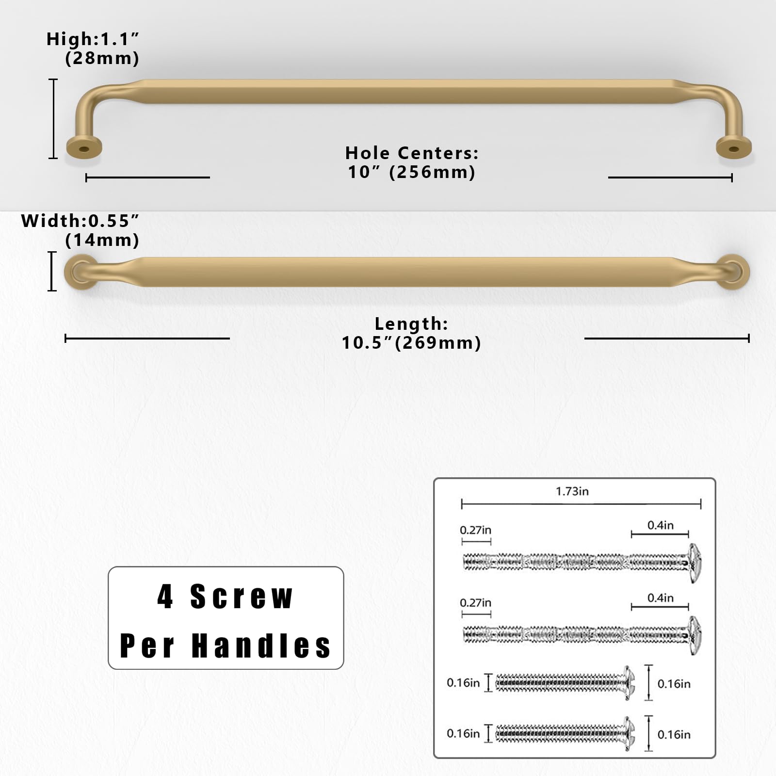 Details: Asimerdeco 10 Pack Champagne Bronze Cabinet Pulls 10 Inch(254mm) Kitchen Cabinet Handles Solid Zinc Alloy Cabinet Hardware Drawer Pulls
