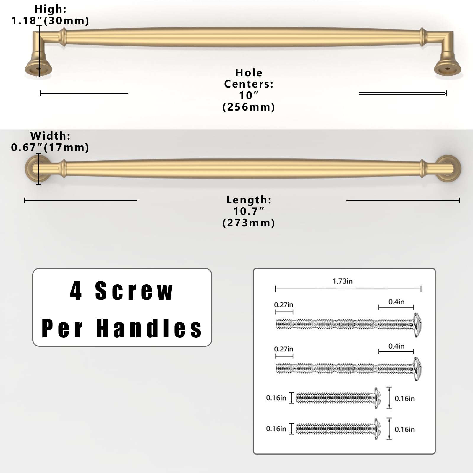 - Measurement: Hole Centers(CC):10 inch(256MM); Overall Length:10.7 inch(273MM);Width:0.67 inch(17MM);Projection:1.18 inch(30MM);Please check the Size of handles you require carefully before.