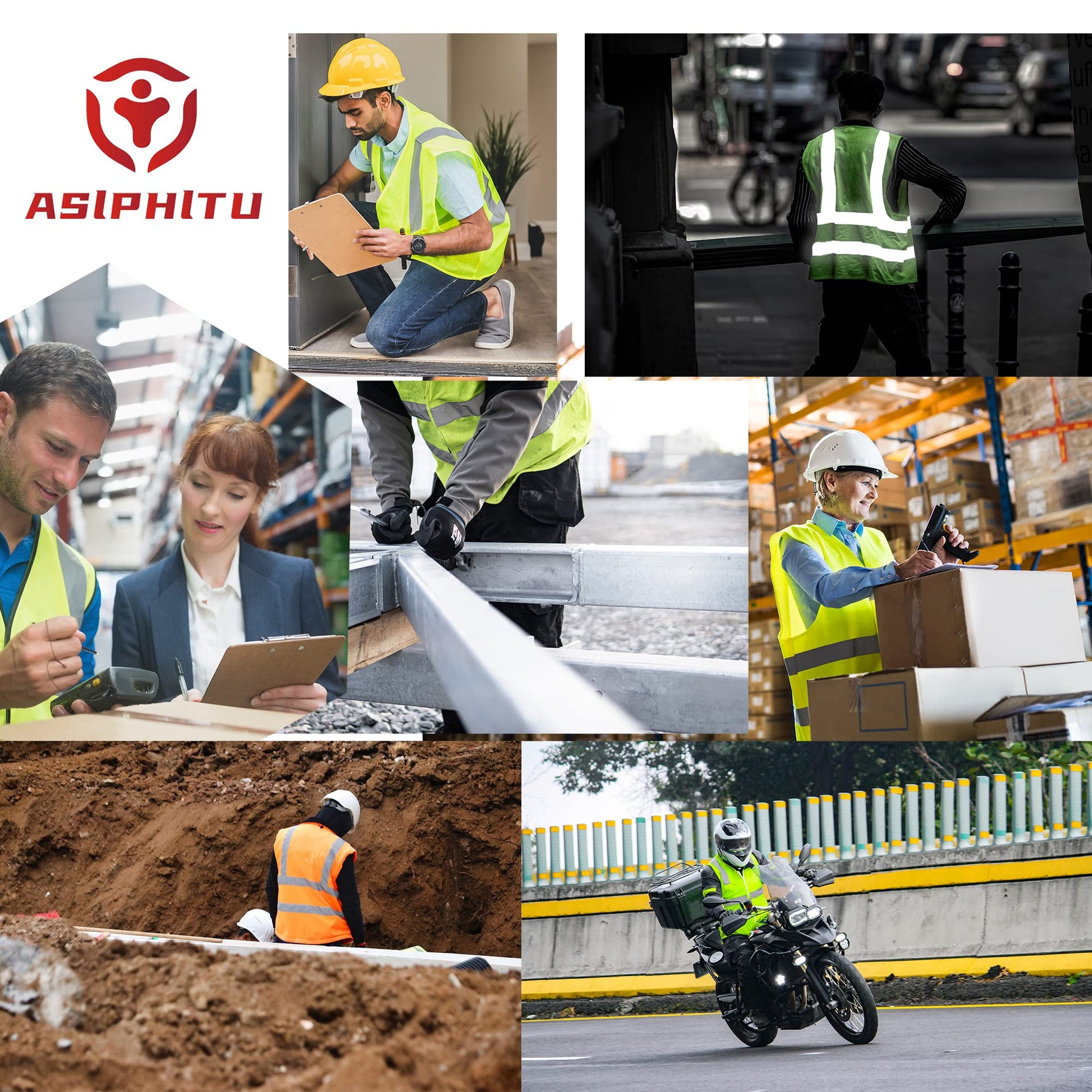 - INDUSTY APPLICATION: The Asiphitu mesh reflective safety vests widely used in construction workers, surveyors, truck driver accessories, warehouses, running vest, traffic, firefighters, police, volunteers, contractors, engineers motorcycle, railroad, airport and industrial for high visible safety.