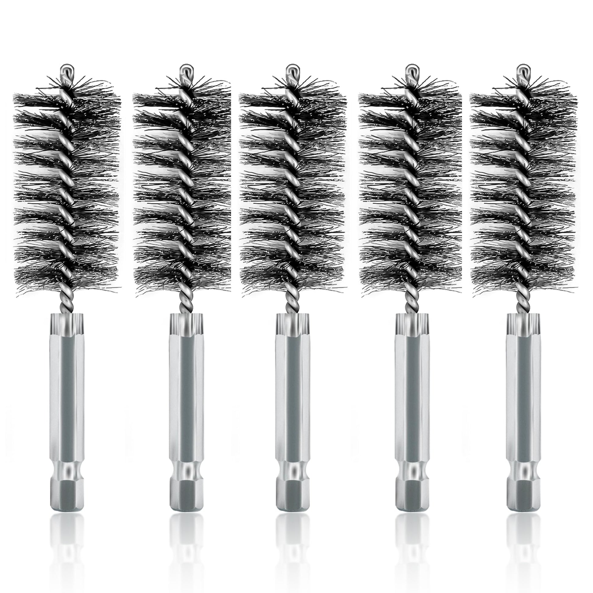 - [Package Included] You will get 5 pcs stainless steel bore brushes. The diameter of round brushes is about 1"(25mm) with 1/4 inch hex shank. The total length is 4inch. It is suitable to replace traditional bore brush.