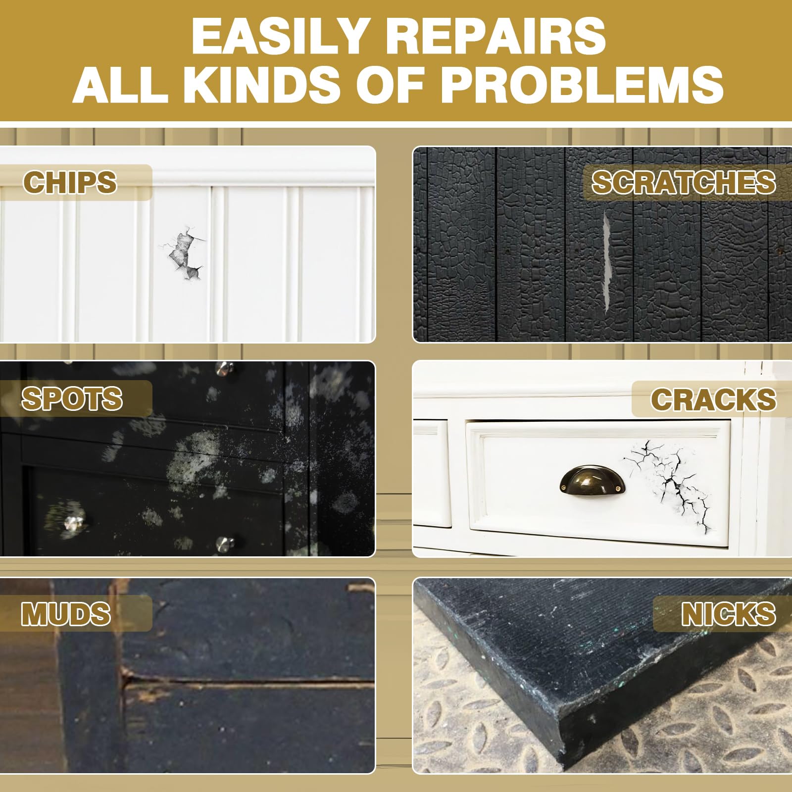 - Easy to use: Compared with traditional paint cans, our cabinet paint is small and has a built-in small brush, which can avoid repair disasters caused by large brush heads. Just apply the white wood paint precisely on the scratches, which greatly improves the repair efficiency
