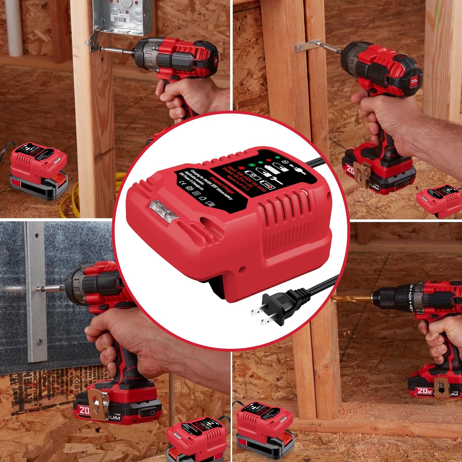 - This portable 20V replacement charger is equipped with an LED lamp that displays the current charging status. And built-in protection to protect the battery and charger from overheating, overcharging and short circuit.