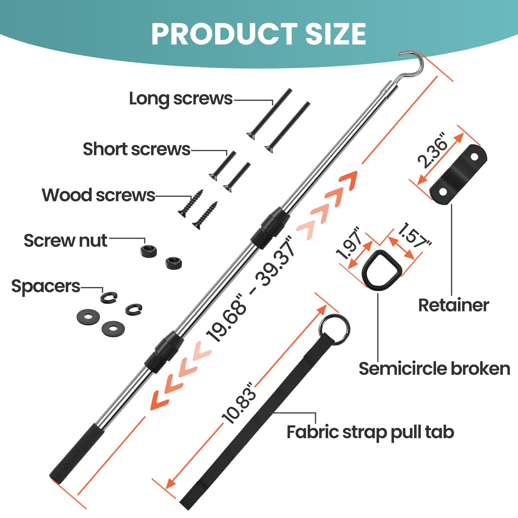 - 【SIMPLE OPERATION & INSTALLATION】The Attic Ladder Pull-Down System Hook Rod is adjustable from 20 to 40 inches, requiring no complicated splicing or tools for effortless opening and closing of the attic door. The reinforced buckle design keeps the hook securely in place, providing enhanced safety and stability—unlike competitors’ models, ours prevents loosening issues for worry-free operation