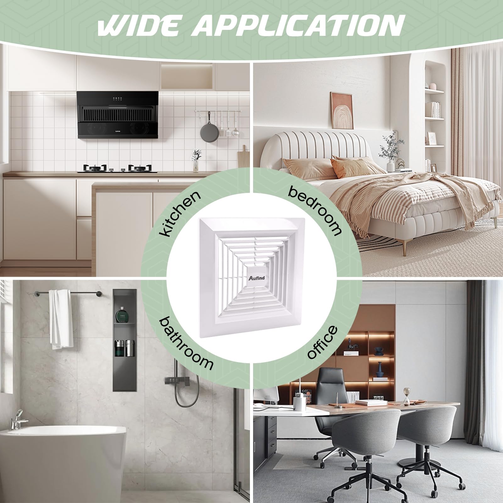 - Sleek Universal Design:This classic white ventilation mask blends seamlessly with any bathroom decor. Works with square ceiling/wall-mounted exhaust fans, ventilation systems, or as an air diffuser. The low-profile design complements modern interiors while providing functional airflow control.