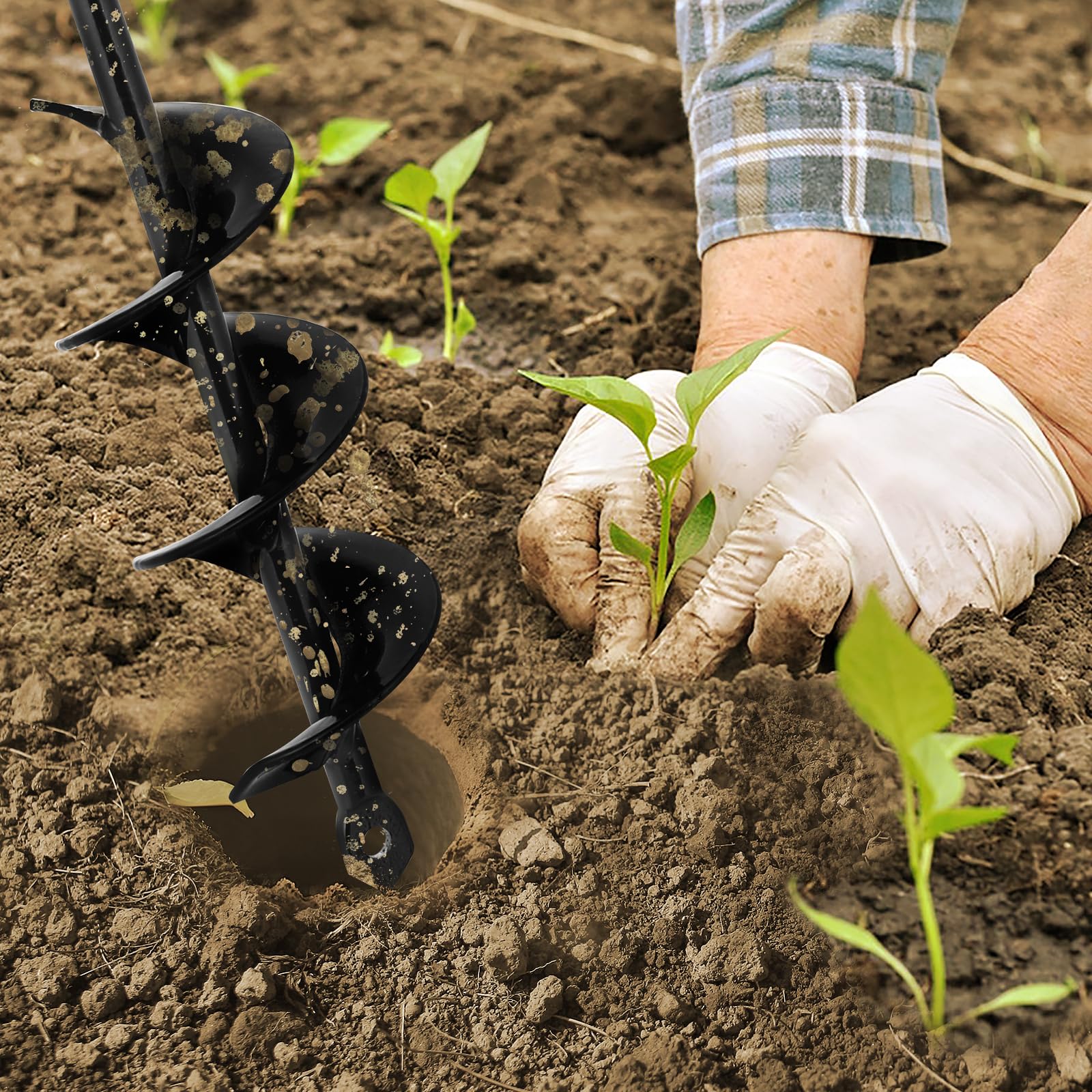 - 【Size & High Quality】Auger bit size: 3"(D) x 9"(L), ideal for digging holes in your garden. The garden auger drill bit made of heavy duty steel with black paint coated, won't rust or bend and can work on loose soil, hard ground, sand, clay, even ice.