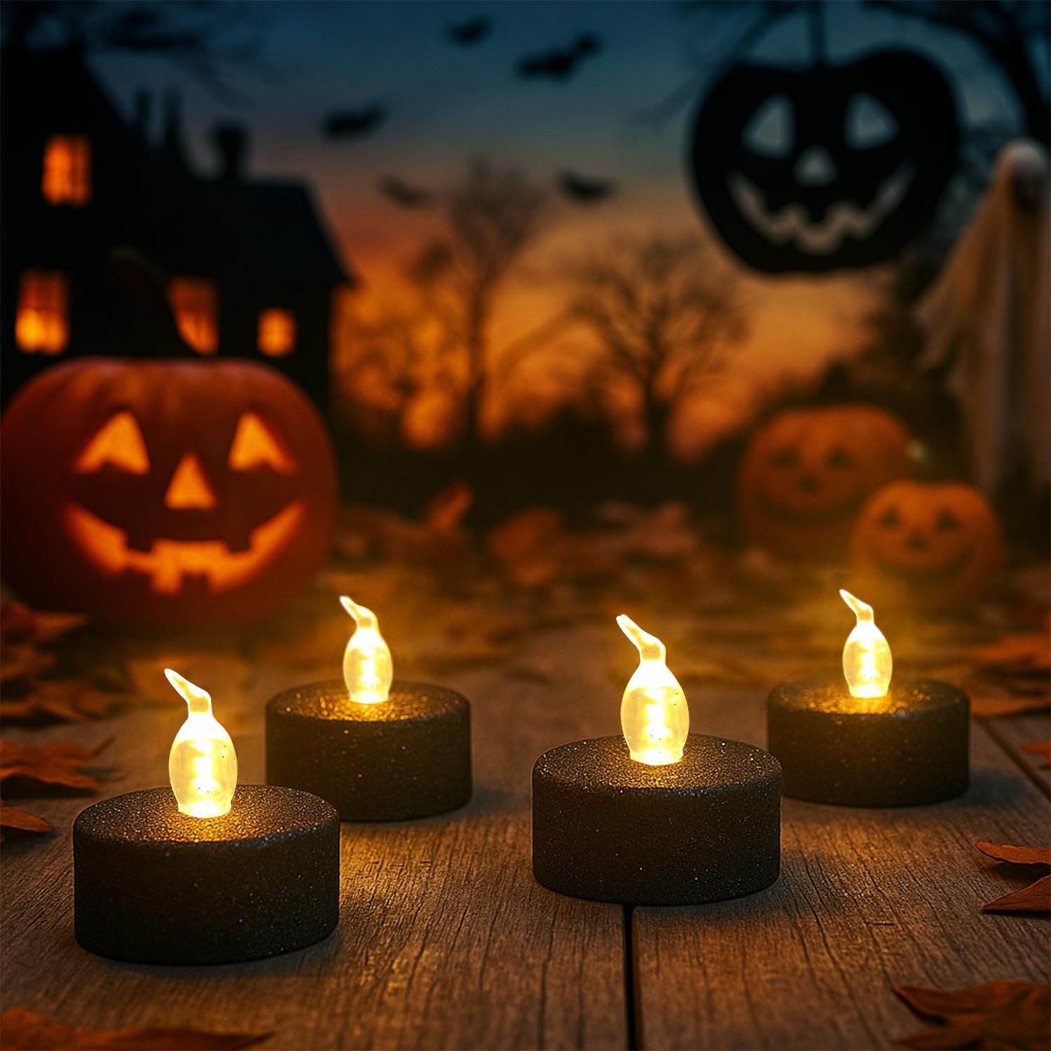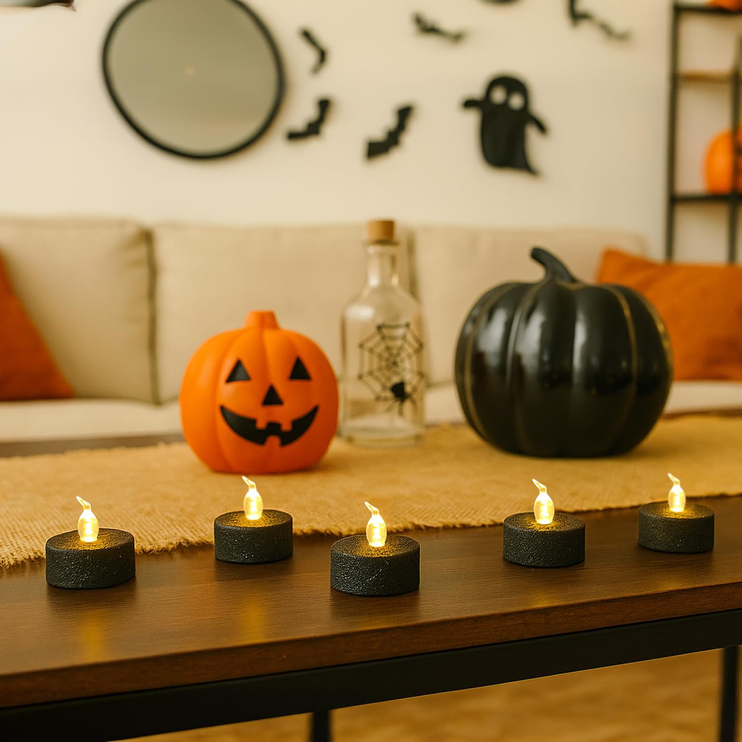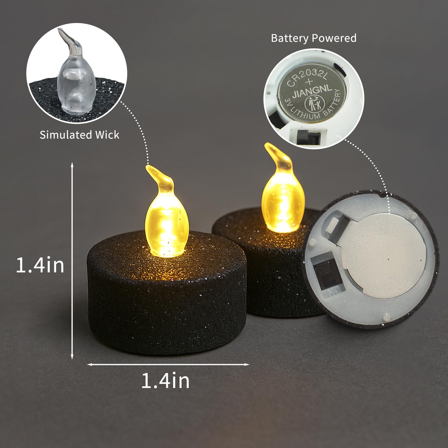 Aulaygo 12PCS Glitter Black Tea Lights with Timer,Sparkly Tealights Candles Battery Operated for Gothic Wedding Home Decoration Halloween Party