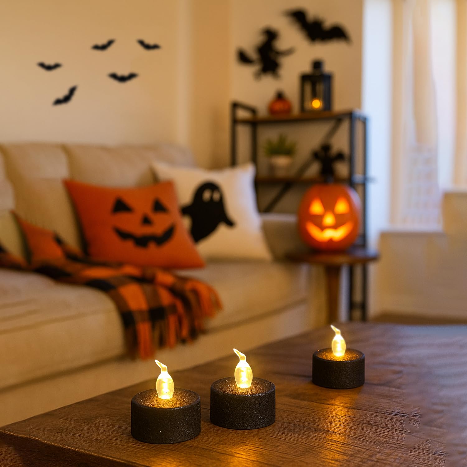 - Value set:You can receive 12pcs flameless tealight candles and 16 pcs scary 3D bat wall stickers (4 different sizes:2.8",4.1",4.7",6.5"),measuring at about 1.41x1.41in/3.6x3.6cm,each led candle requires cr2032 batteries(Including),200 hours long lasting life,no need to change batteries frequently.
