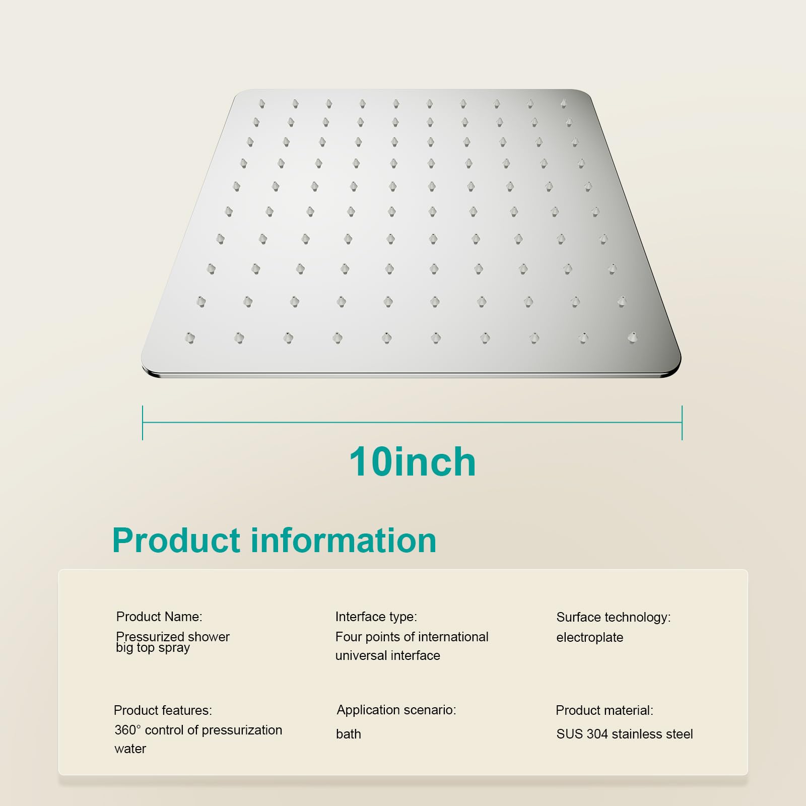 AULEEND Square Rain Shower Head, High Flow Stainless Steel,Work with any decorative style,All Metal Rainfall Shower Head (Chrome, 10)