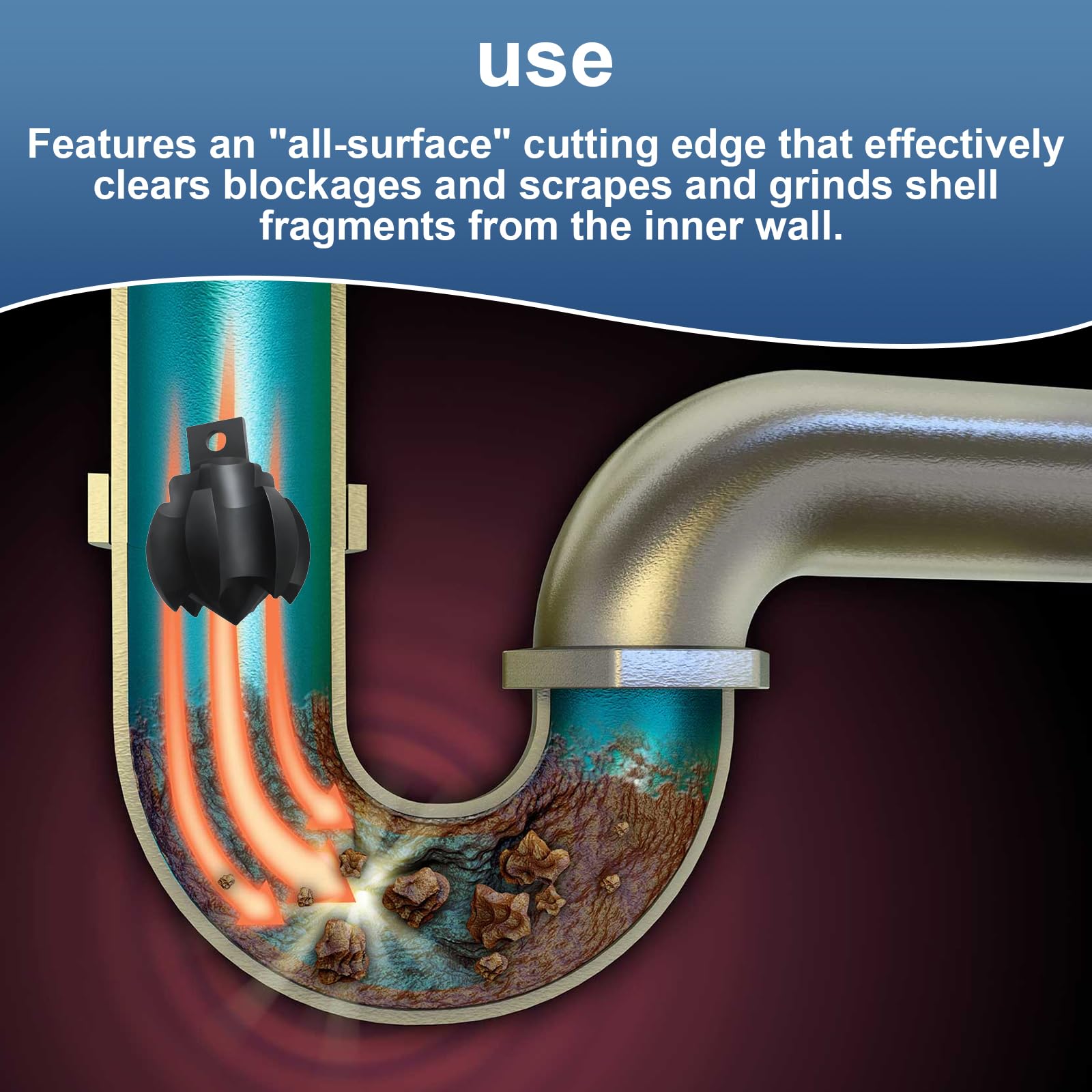 - 【Uses】The drain cleaner head has a "full surface" cutting edge, and the clog chopper can efficiently remove blockages, and scrape and grind crust debris from the inner wall.