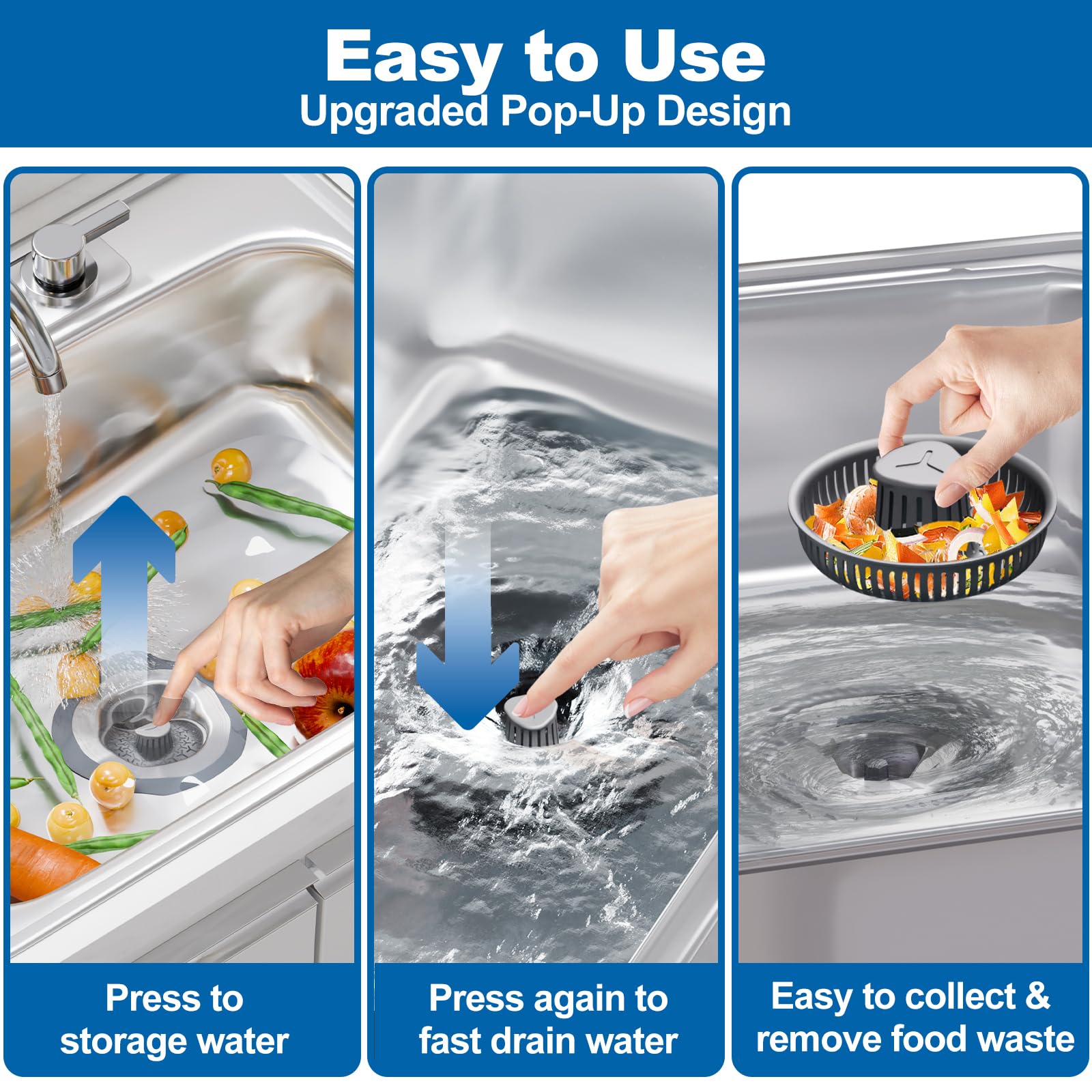 - 【Smart Pop-Up Mechanism & Leak-Proof Triple Seal】 Press the one-touch spring stopper for instant drainage or water storage. The 3-layer silicone rings create a tight seal against leaks and foul smells, ensuring a hygienic kitchen.