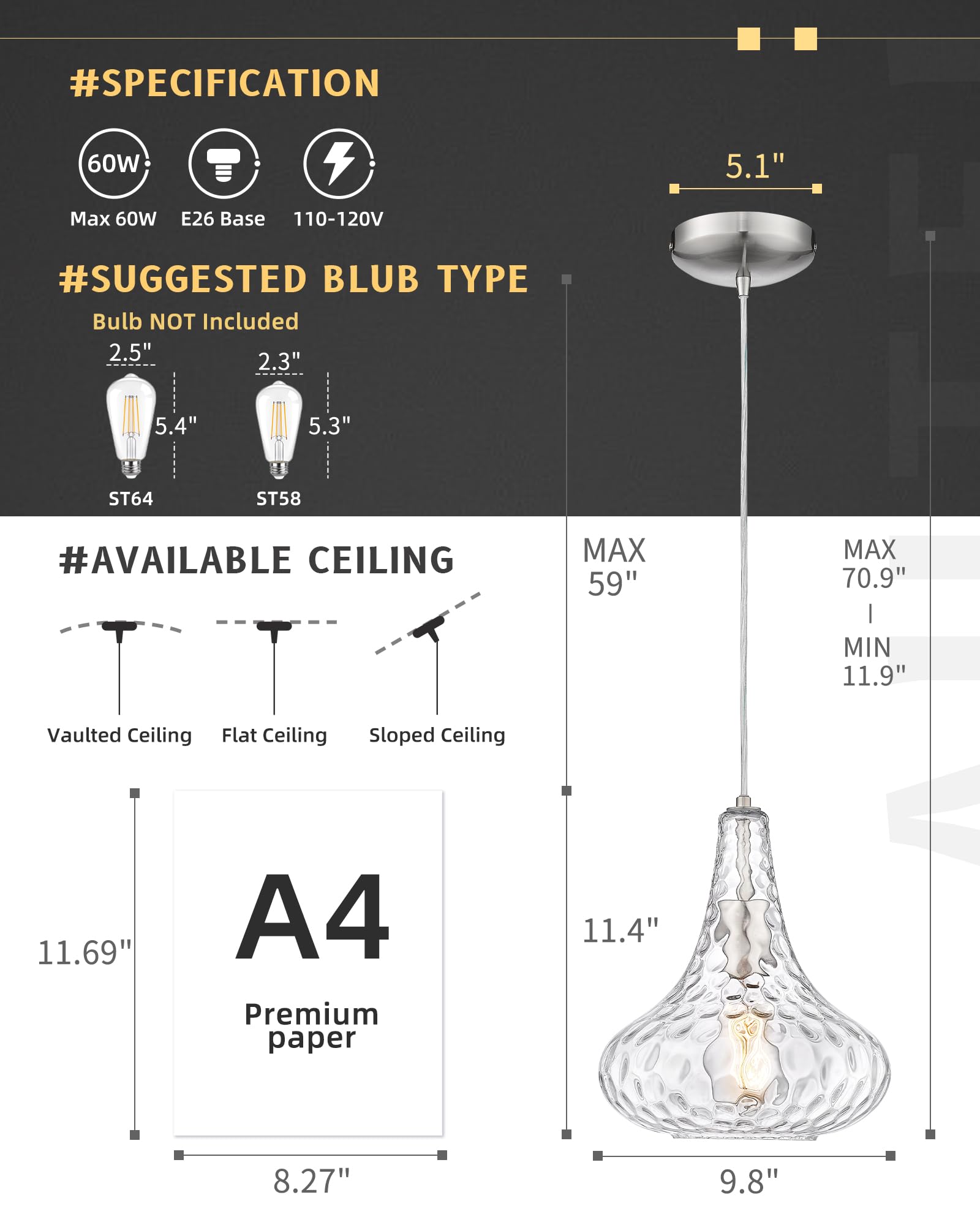 - Modern Design: This 11-inch pendant light fixture featuring contemporary style glass shade, provide a perfect indoor decoration for you.