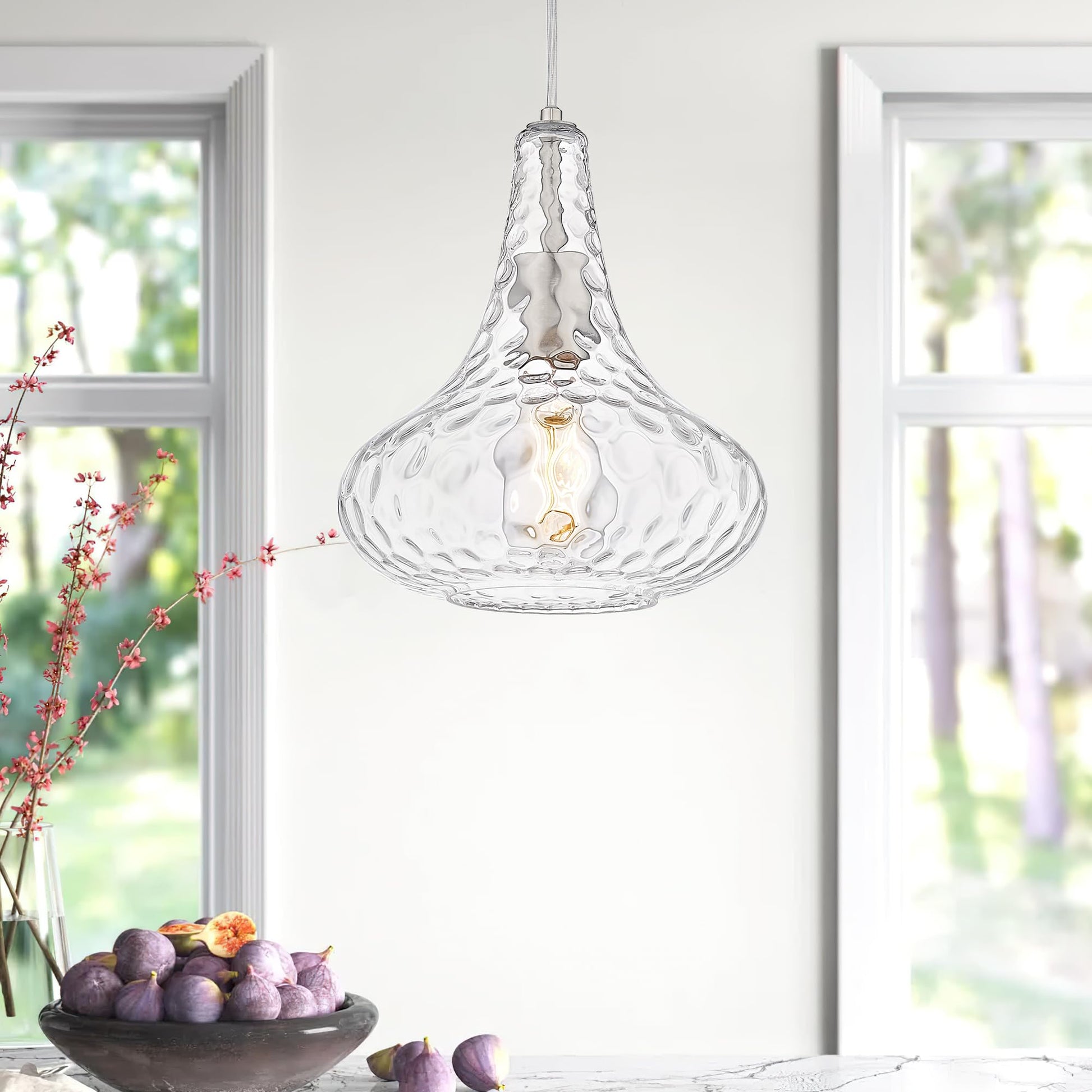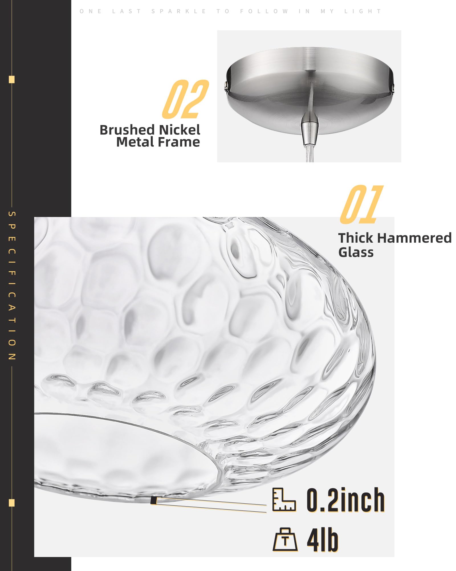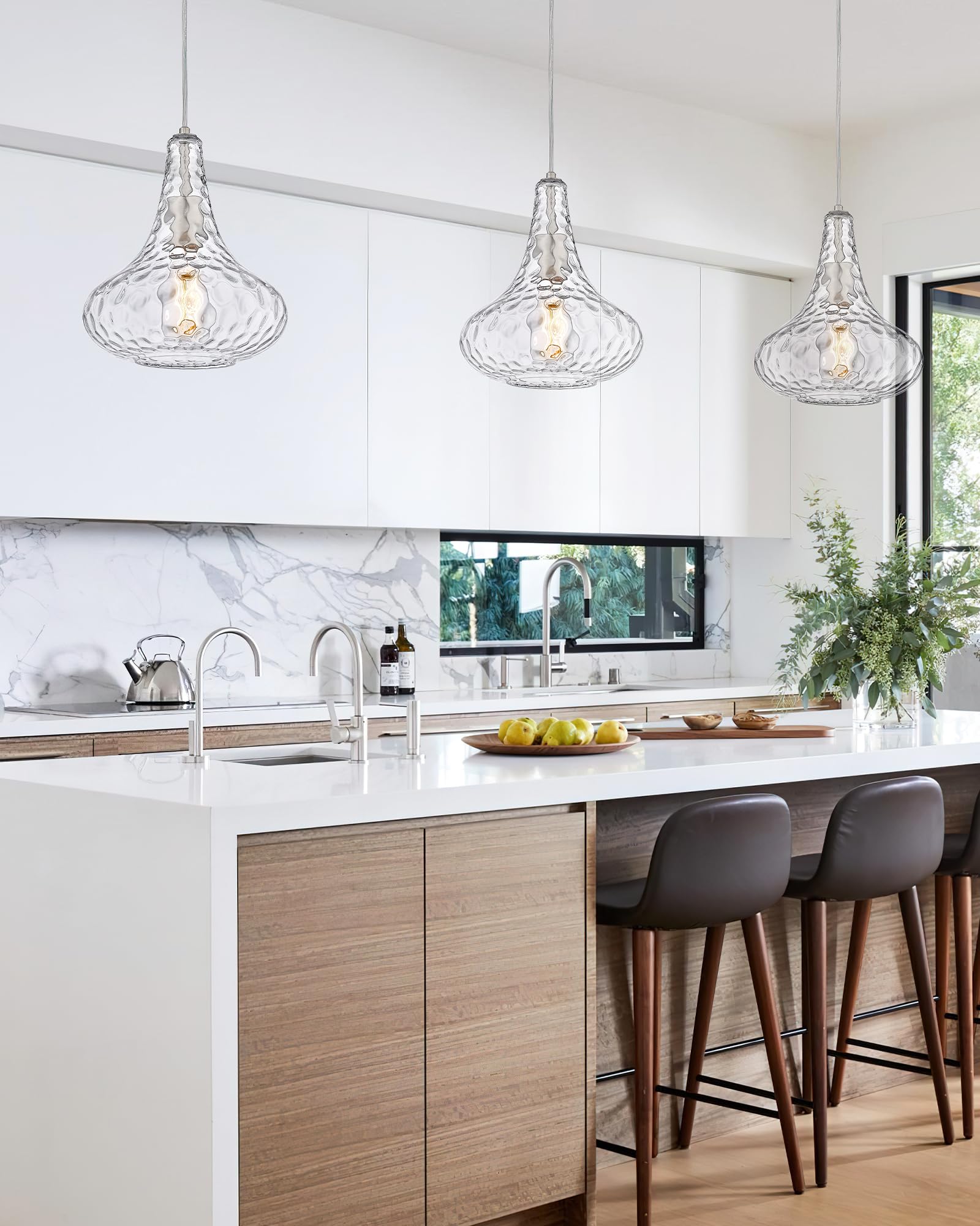 AUTELO Glass Kitchen Pendant Lights Pendant Light Fixture with Hammered Glass Hanging Light for Kitchen Island Living Room Dinning Room H9164