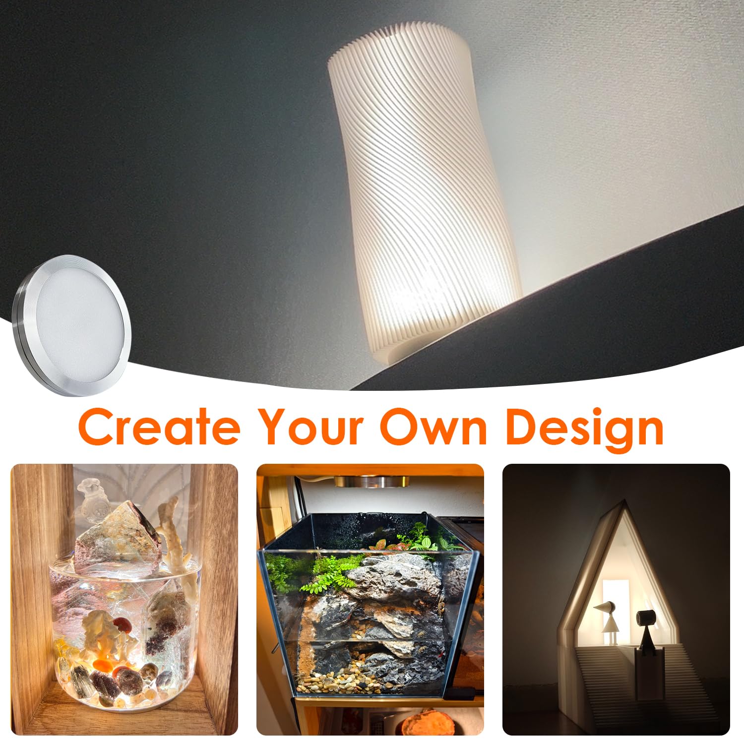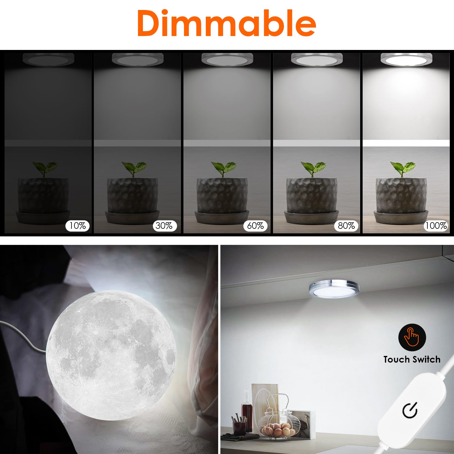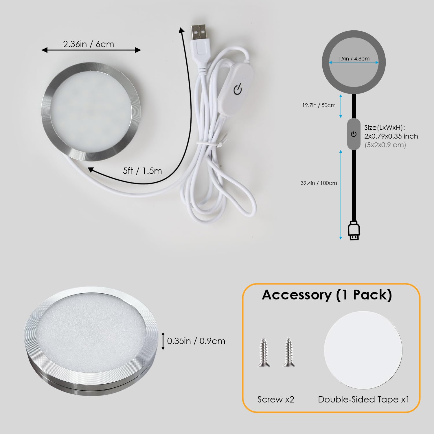 AuyiHomu Single Under Cabinet LED Puck Lights Plug in, 3D Printer LED Lamp Kit 001 DIY USB Powered 5V Dimmable Touch Switch Ultra Thin for Kitchen/Cabinet/Wardrobe/Showcase (Cool White/6000K)