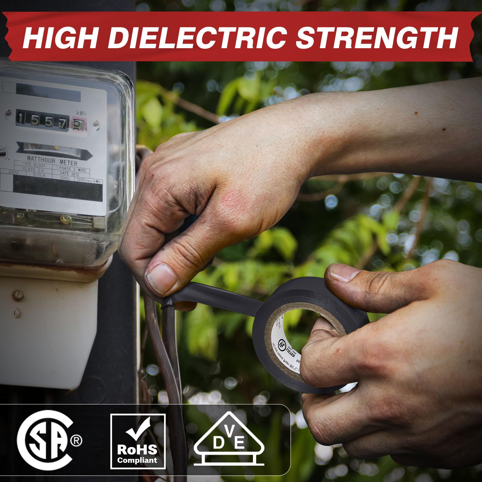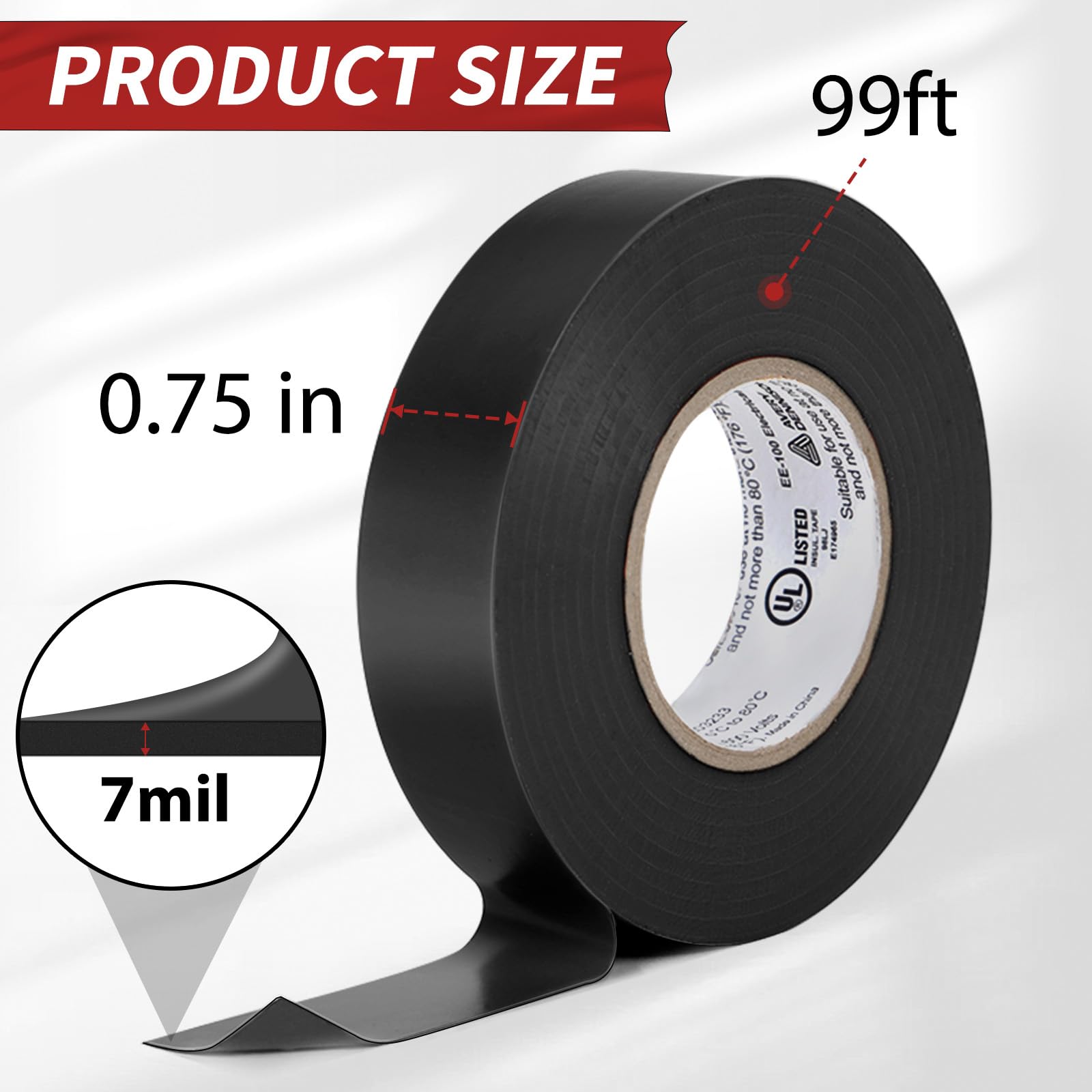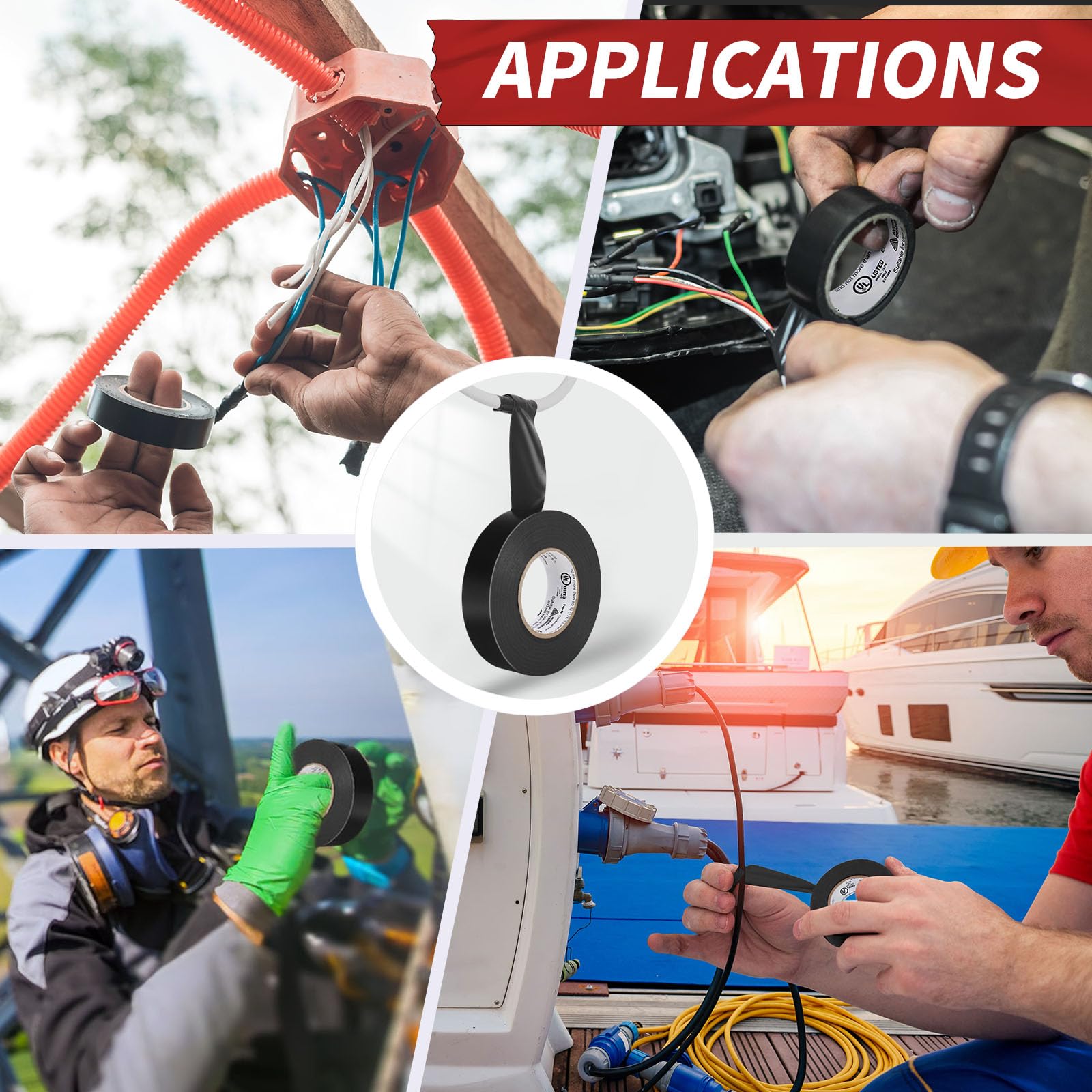 - High Quality PVC Electrical Tape: Made of heavy duty industrial type polyvinyl chloride material. Electric Tape is a versatile vinyl insulating tape with strong sealing properties and excellent adhesion, avoiding the risk of unexpected detachment over time