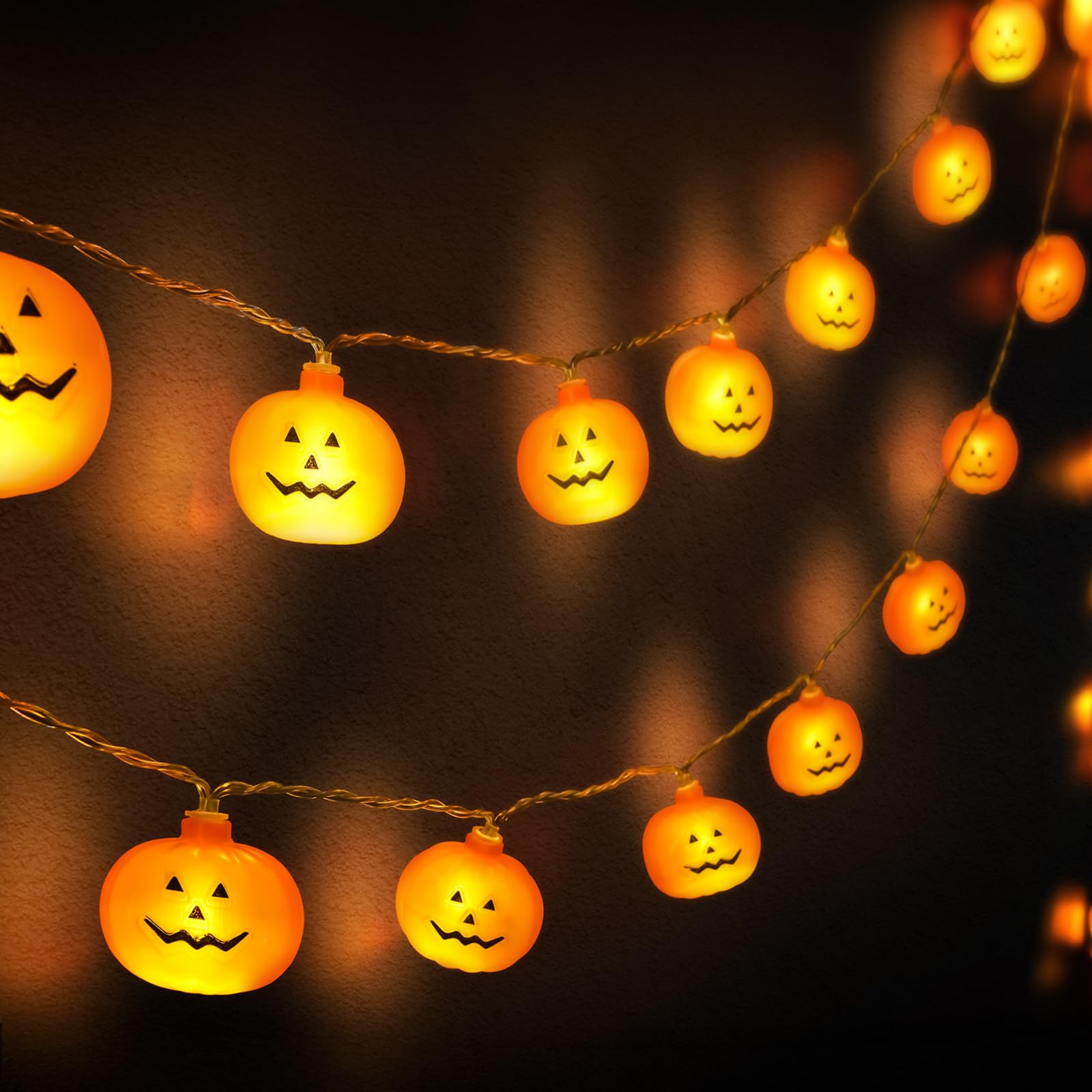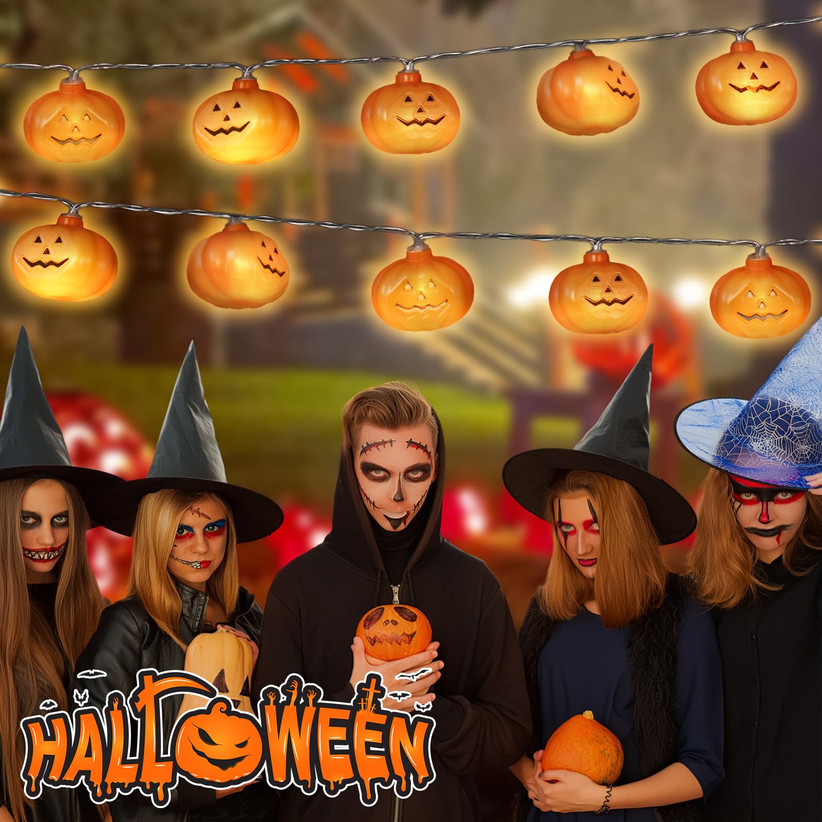 - 20 LED Cute Pumpkin String Lights, The set of 20 Led Lights 3D Orange -Lantern Pumpkin Halloween string lights brighten up your house, perfect Halloween indoor/outdoor decoration for dressing up Halloween parties, carnival and other special events