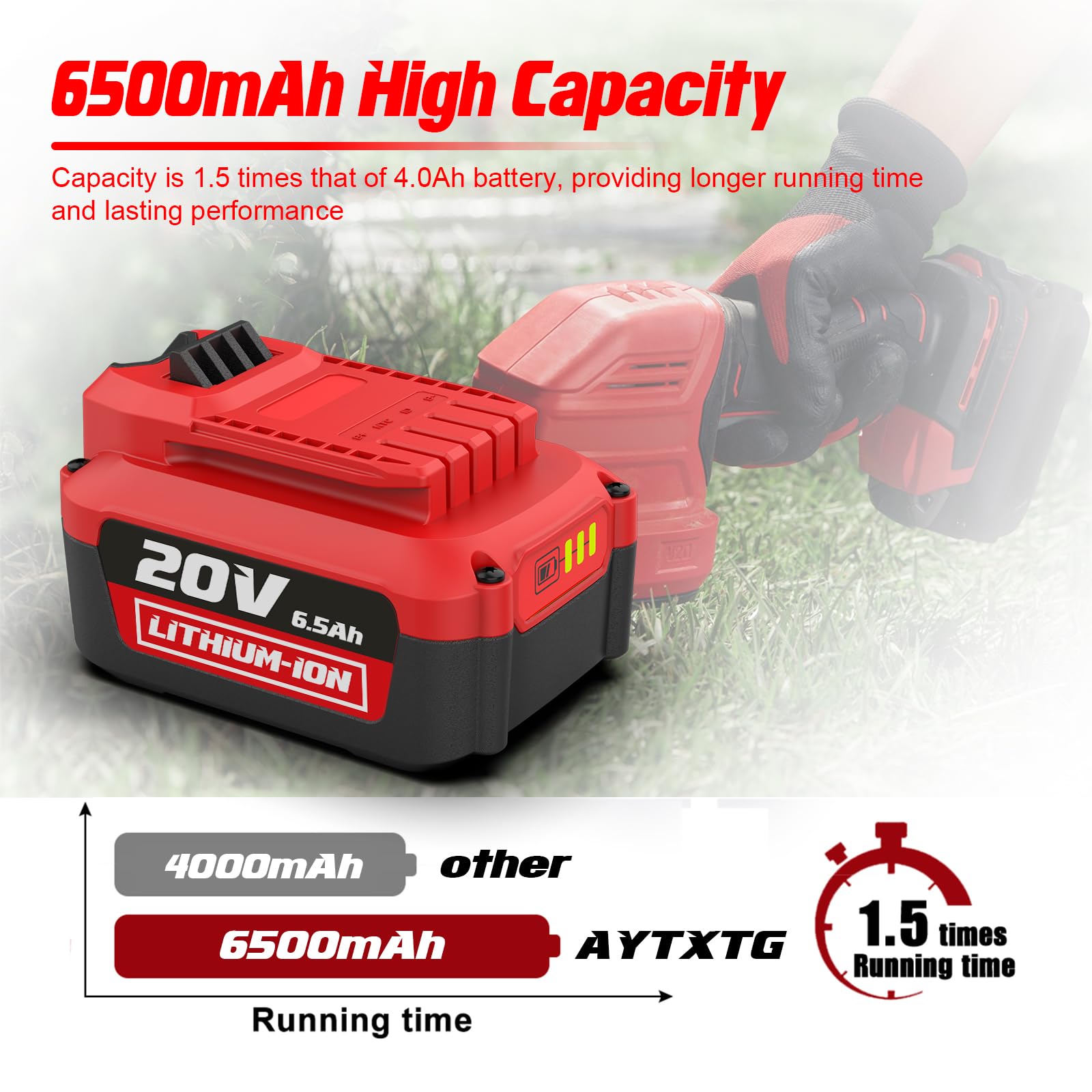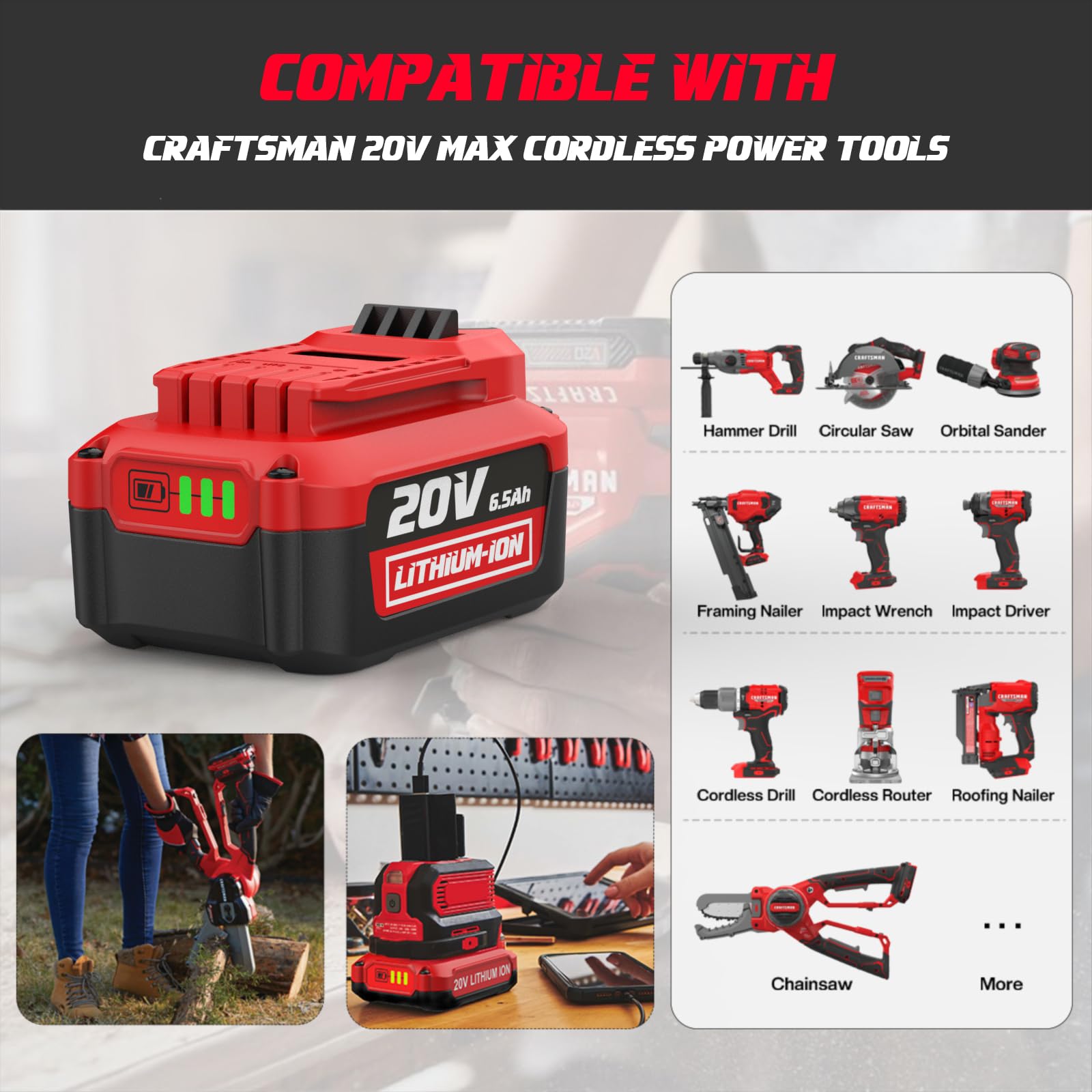 - [Engineering level use]: The 6500mAh battery provides plenty of power for your high performance 20V max craftsman tools,Provides fade-free power from start to finish