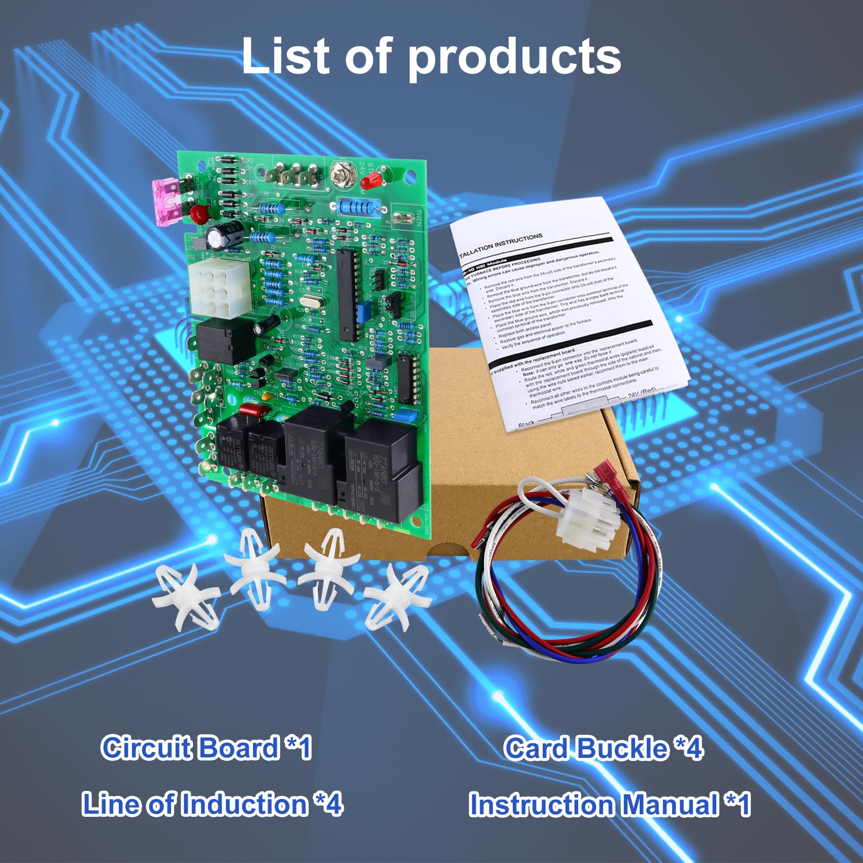 - List of parcel:Circuit board*1,Instruction Manual*1,Line of induction*4 and Card buckle*4.