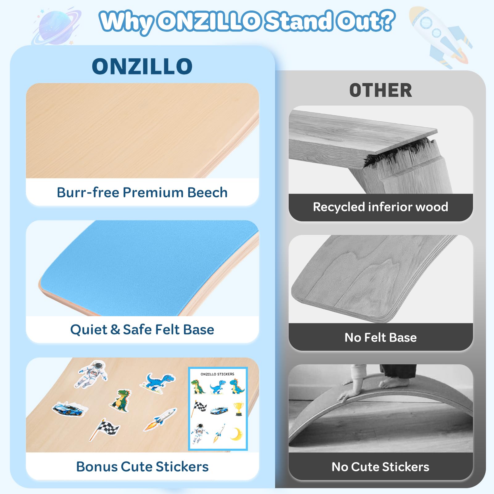 - 【Creative Exploration Board】The wobble board is anything can be imagined: a bridge, lounge chair, slide, stepping stone, side table, racetrack, teeter popper, tunnel, or small football goal. Inspired by M.ontessori principles, it sparks limitless, open-ended exploration
