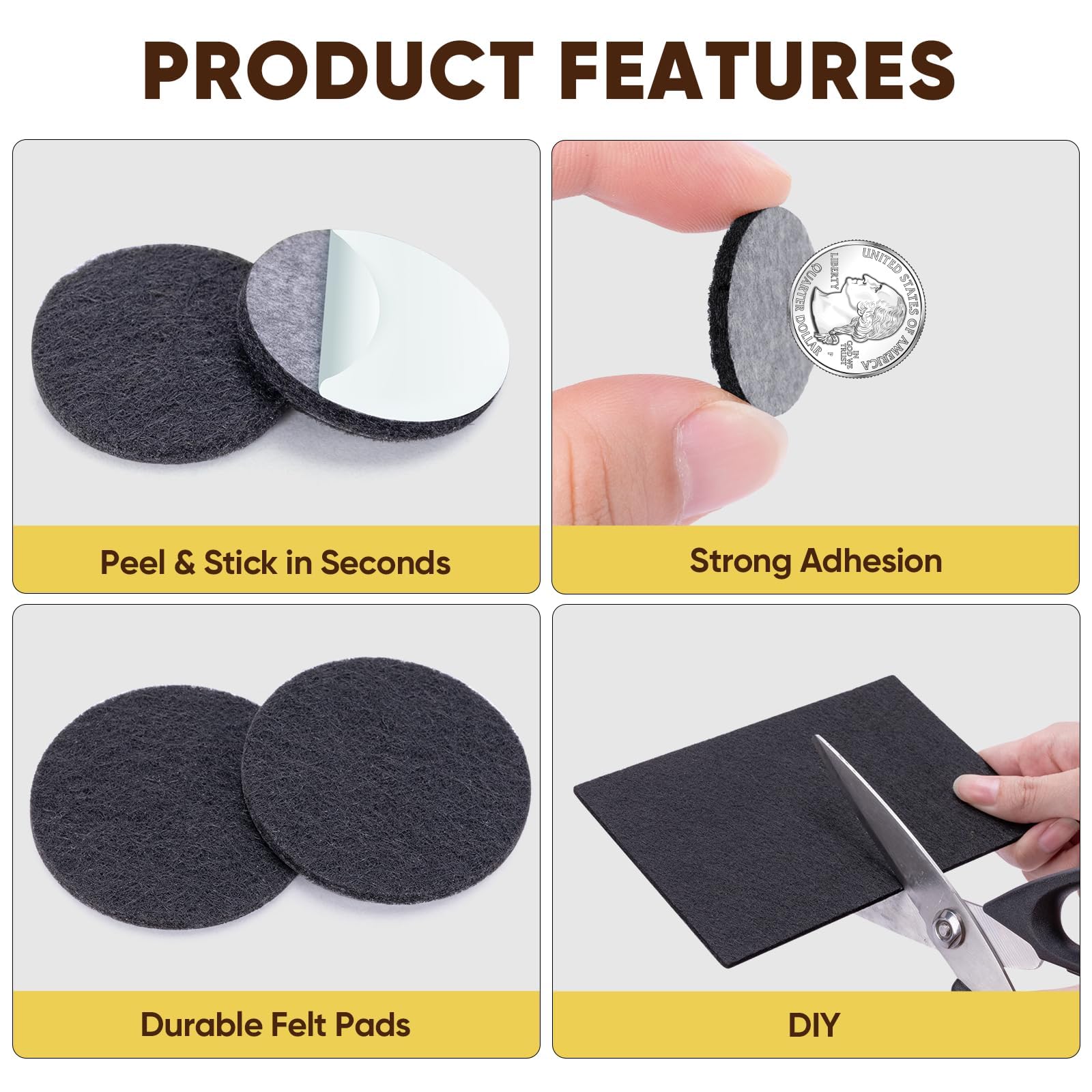 - Strong Adhesive for Long-Lasting Use: The upgraded adhesive ensures felt pads for furniture stay firmly attached; Easy to apply and durable, providing reliable protection as under furniture pads with a strong hold