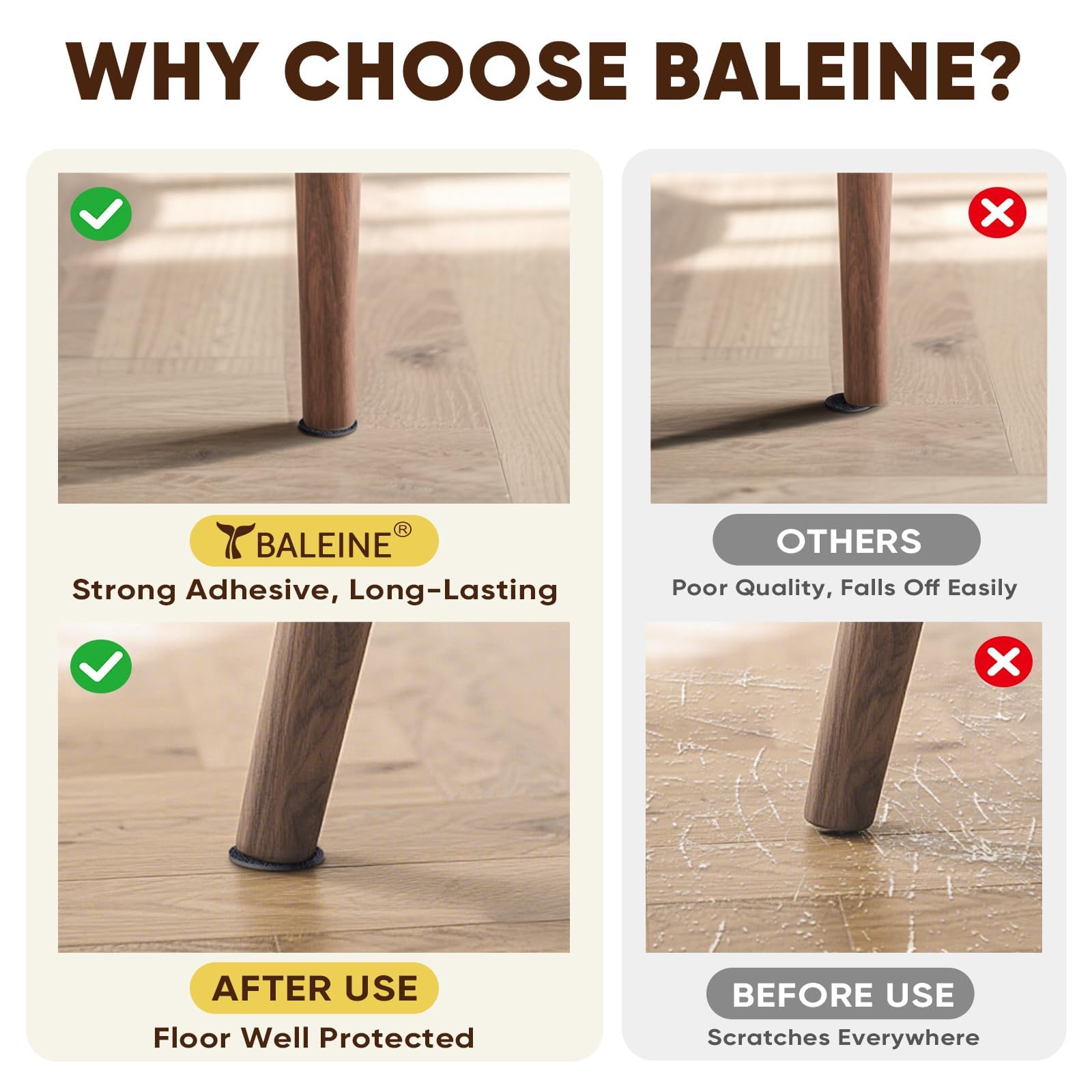 - Reduce Noise and Scratches: Protect your floors from scratches and reduce noise caused by moving chairs and furniture with BALEINE high-quality felt pads; Suitable for hardwood, tile, vinyl, and laminate surfaces