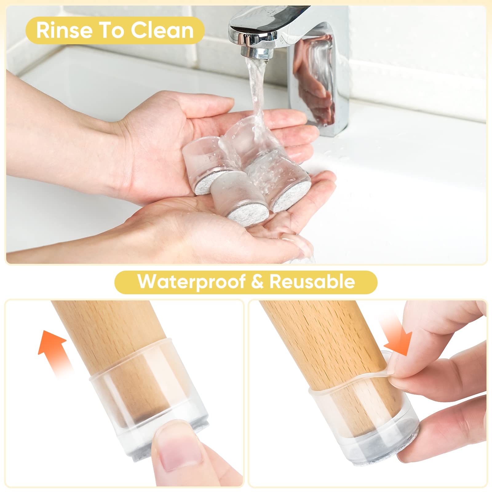 - [SCRATCH FREE & NOISE FREE] BALEINE chair leg cover will help protect your hardwood or ceramic floor from scratching. Felt pad will allow chairs or stools to slide without unpleasant noise. The chair leg caps will reduce scratch and noise significantly.