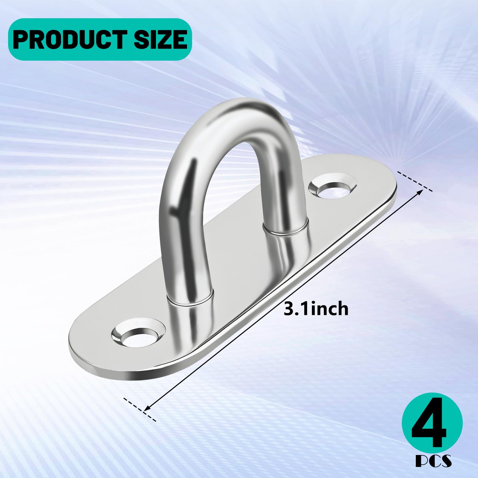 - 304 Stainless Steel: Pad eye hooks for hanging are made of superior 304 stainless steel, with a smooth surface free of burrs, corrosion resistance, and are safe and reliable.