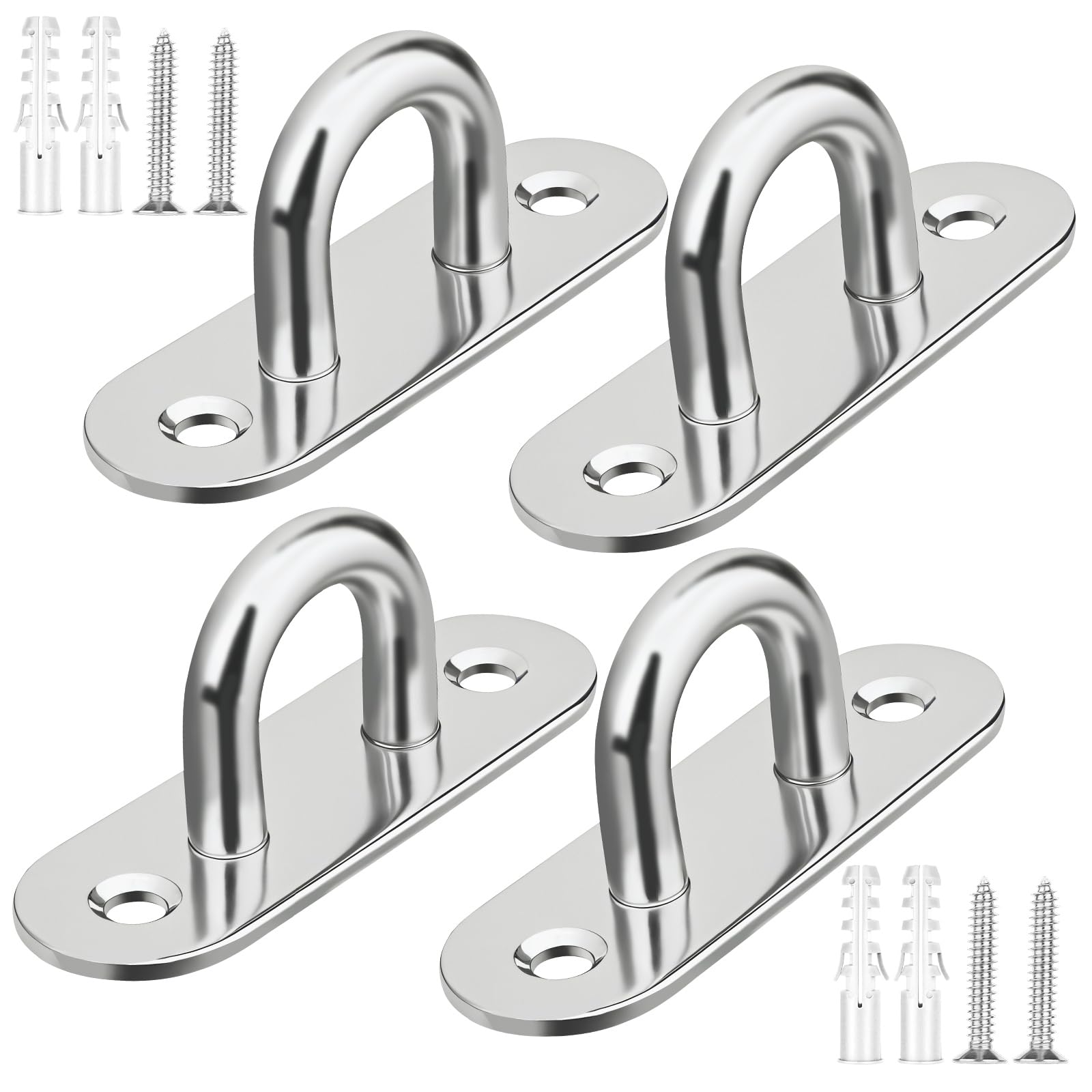 Baocuz 4 Pack 304 Stainless Steel Pad Eye Hooks, 3.1 Inch Ceiling Hooks for Hanging, Silver Hanging Hook with Screws